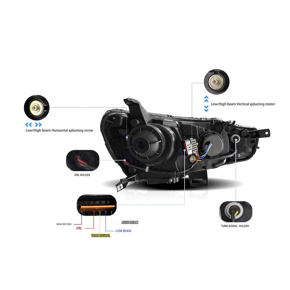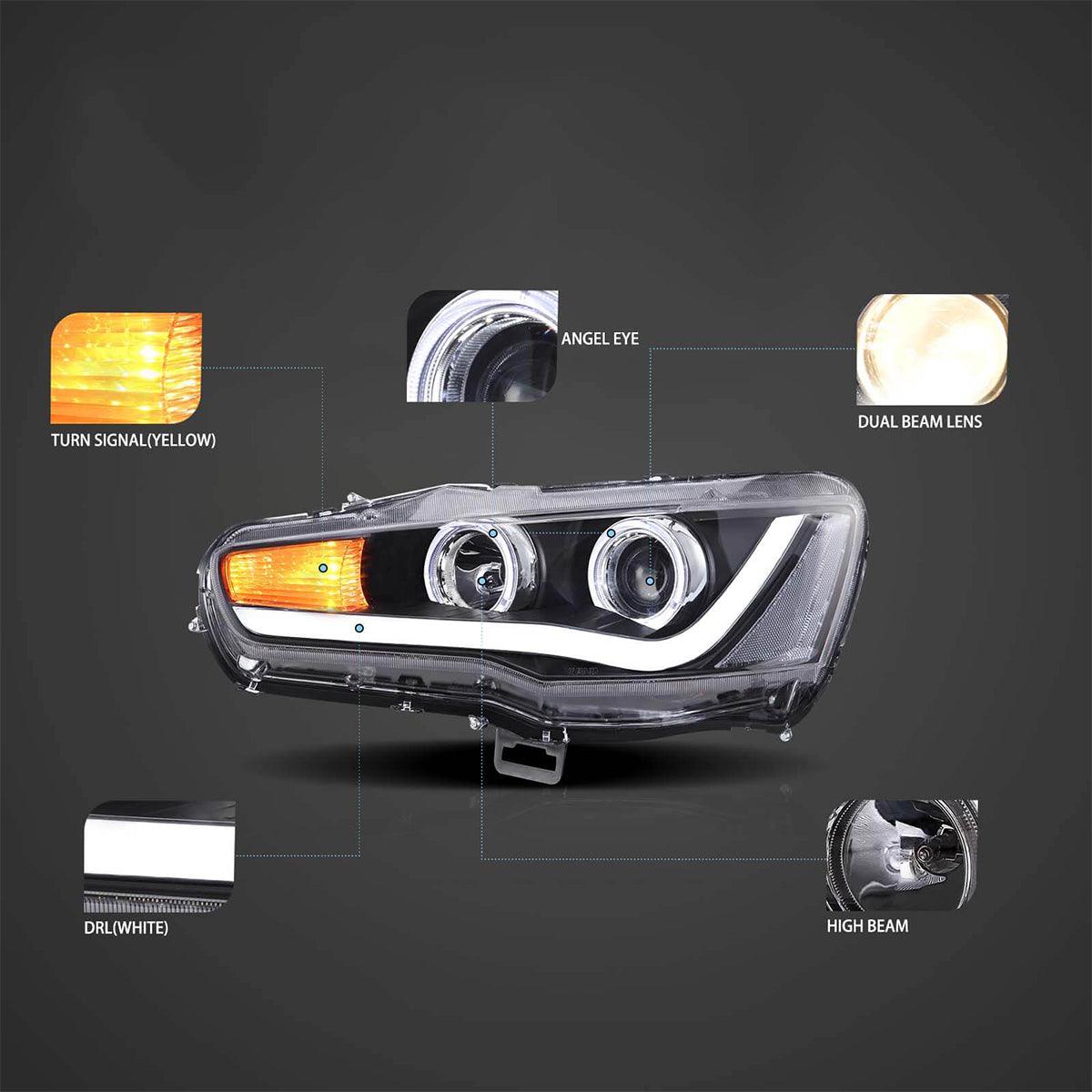 LED Headlight Assembly Projector Black For 2008-2017 Mitsubishi Lancer 9th Gen Evo X GSR 10th Gen(CZ4A)