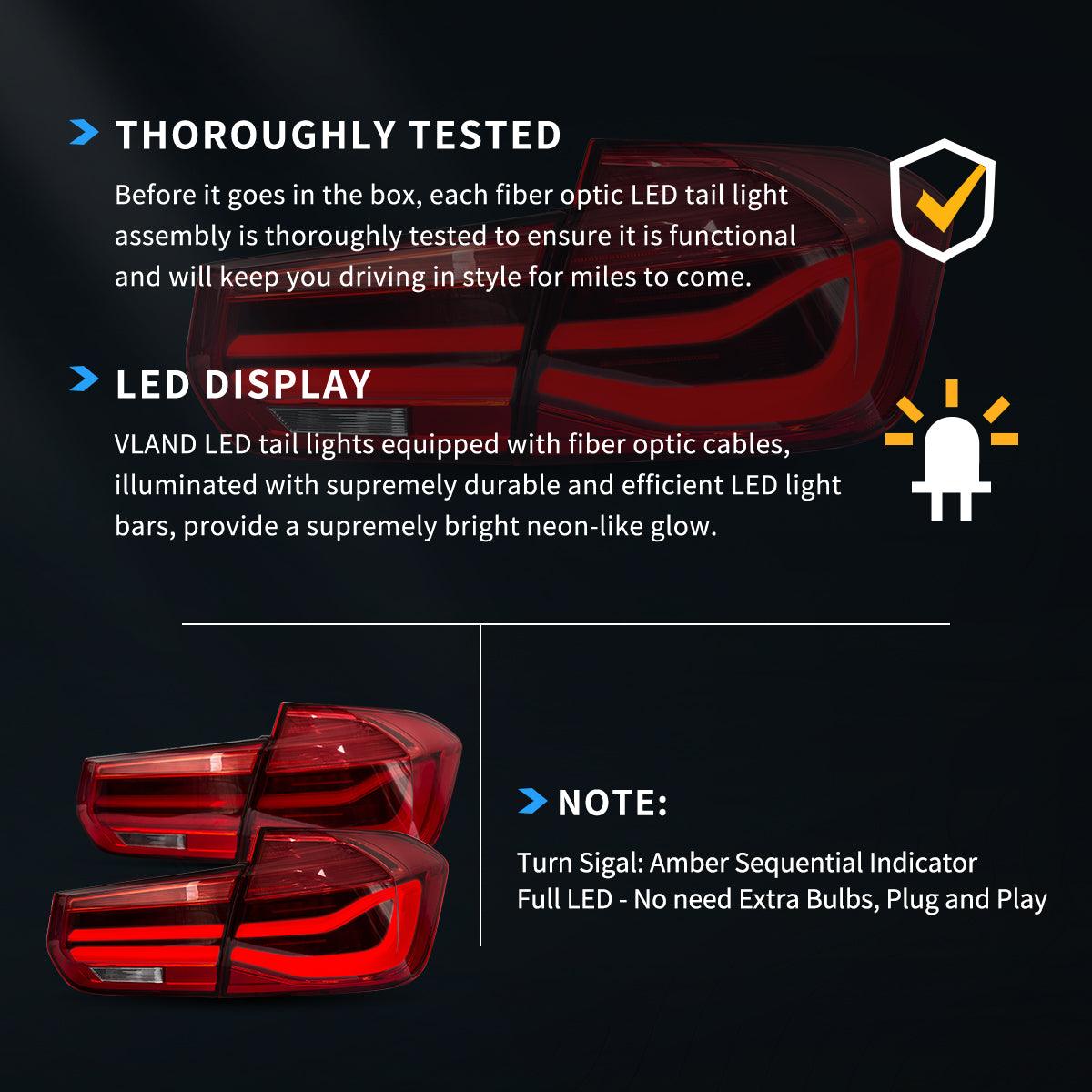 LED Tail Lights Assembly With Sequential Amber Turn Signal For 2012-2019 BMW 3 Series 6th Gen (F30 F35 F80)