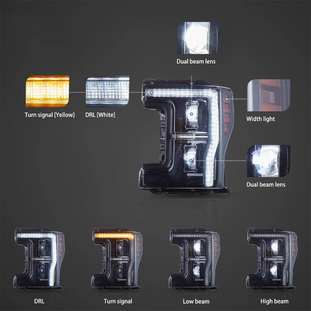LED Headlight Assembly For 2017-2019 Ford F250 350 450 F550 Super Duty