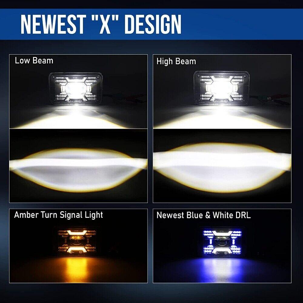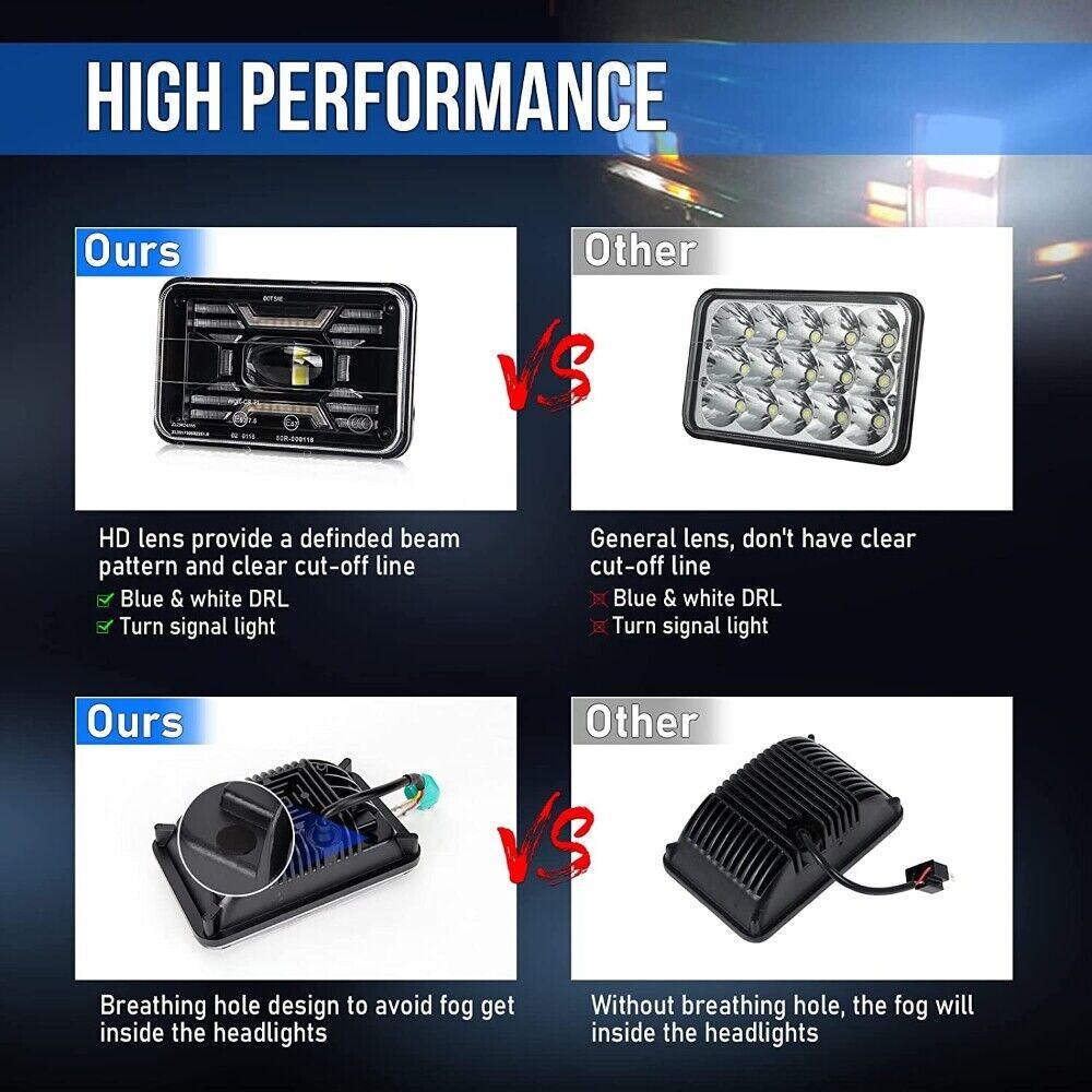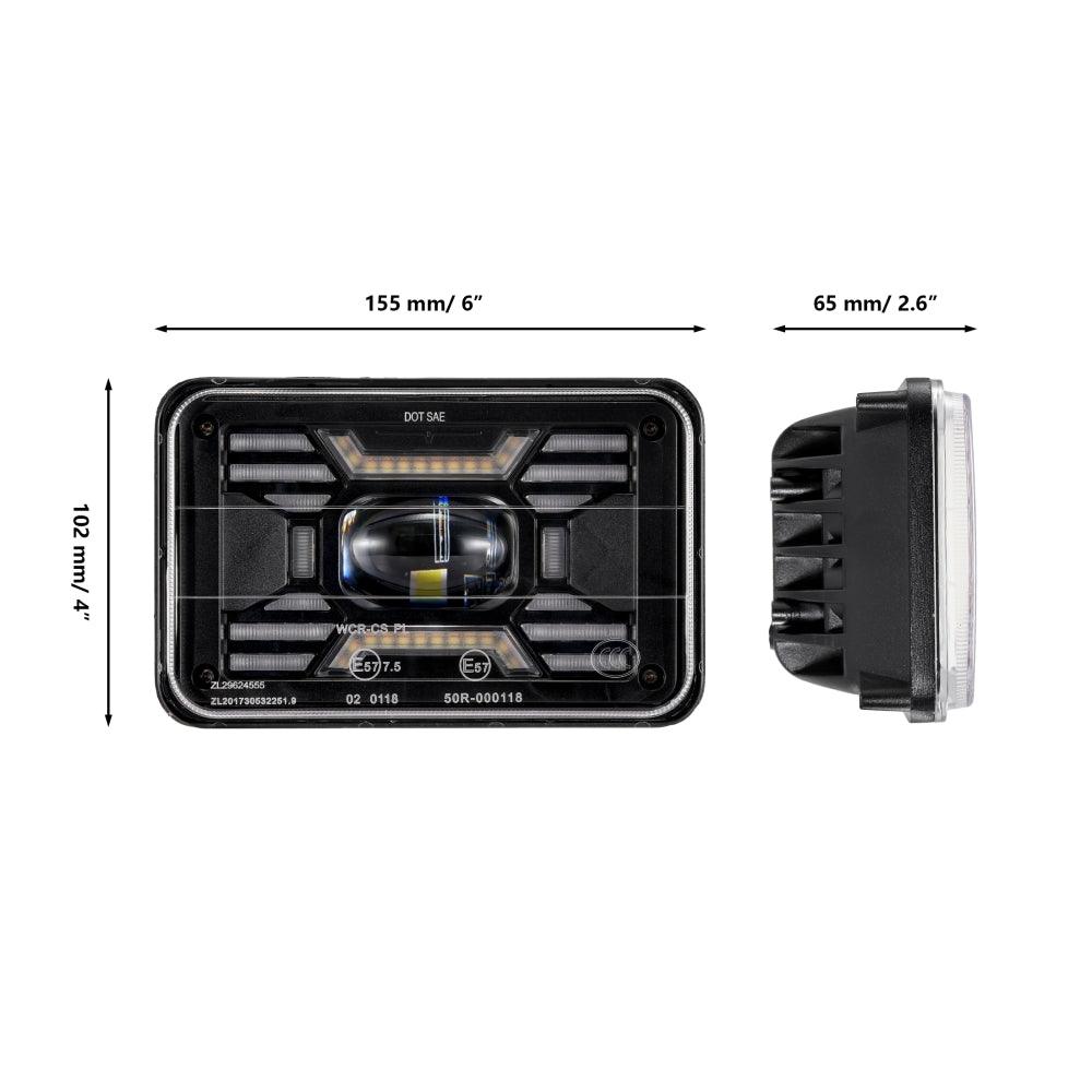 (2pcs/set) 4x6 Inch Sealed Beam LED Headlights with Hi-Lo Beam DRL Turn Signal Light