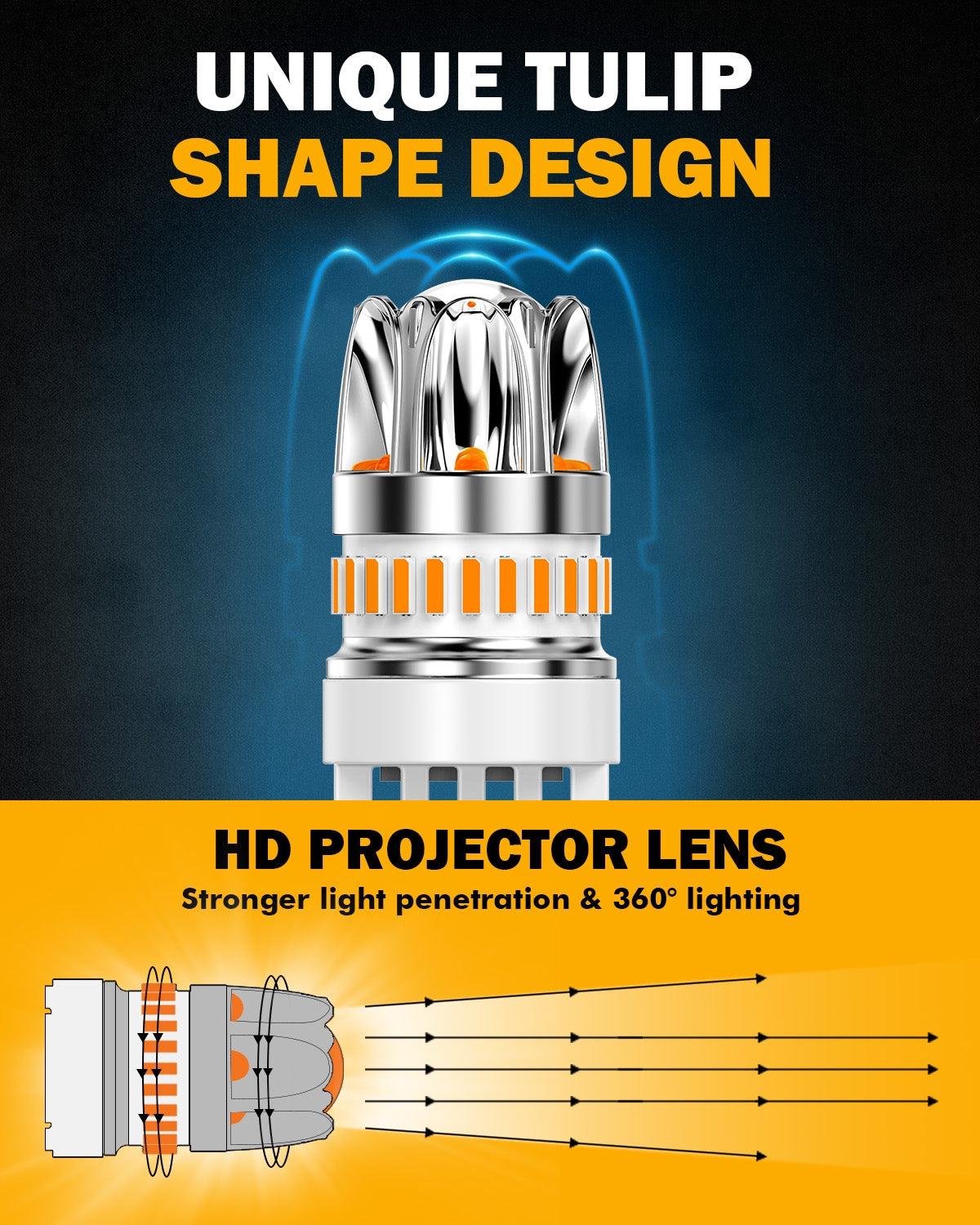 T25 3157 3156 LED Turn Signal Light Rear/Front, Side Maker Light Bulbs 14W 6000LM CAN-Bus Error Free 3000K Amber Y2 Series | 2 Bulbs