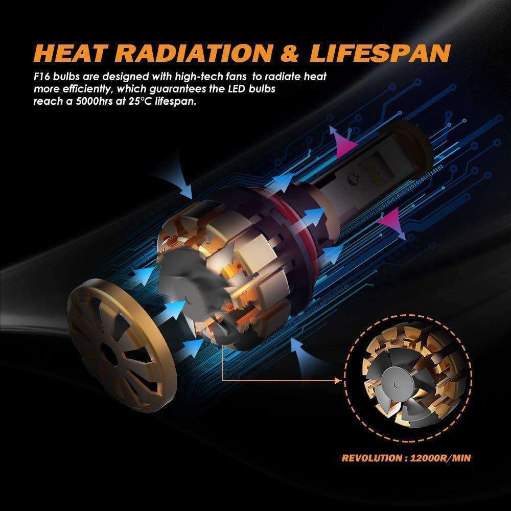 (2pcs/set) 9004 LED Light Bulbs F-16 Series 12000LM 60W 6000K White Light