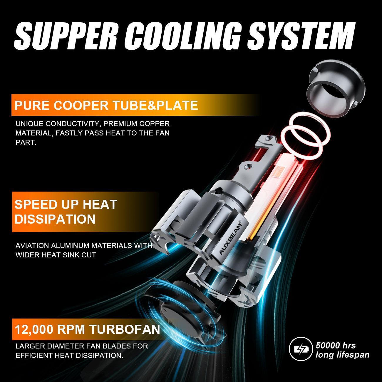 ▶Super Aviation aluminum shell with 12,000RPM cooling fan more effective heat dissipation than fan-less HID bulb, 50,000 hours long lifespan, 10 times than normal HID bulb.