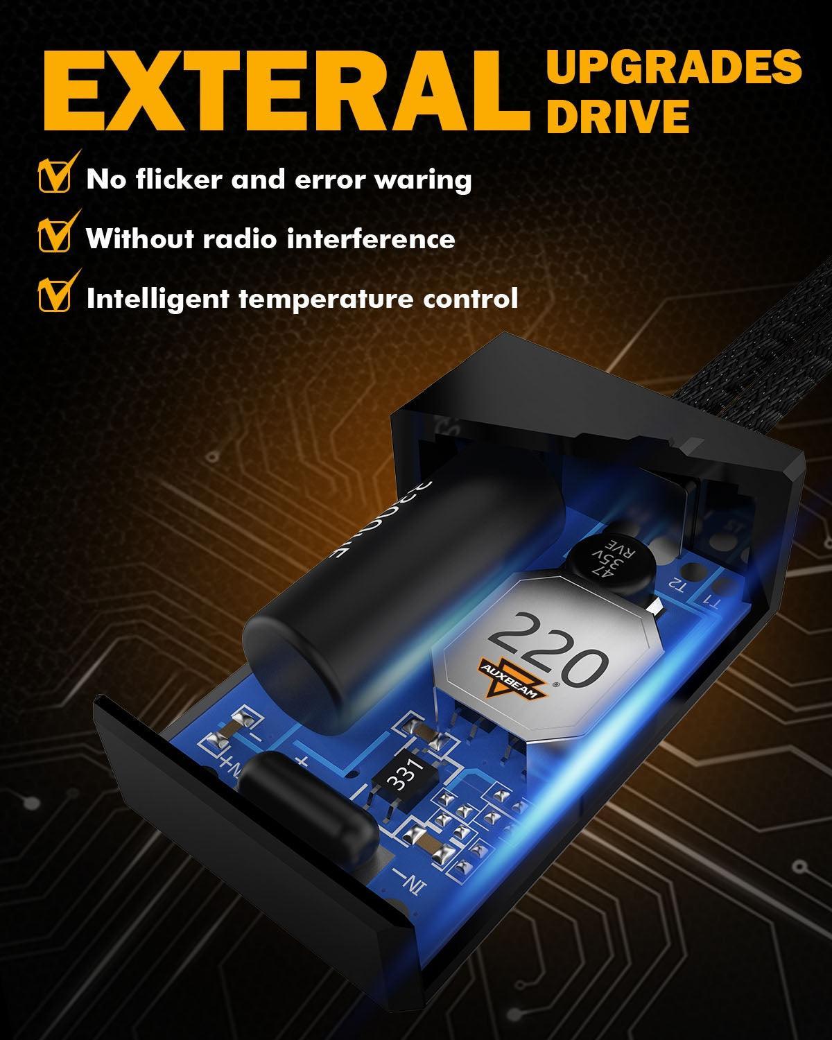 - Upgraded version of F16 series, CSP3570 LED chips, 6000k white, highly efficient 18000 luminance output. The super-focused beam pattern design provides a wider and farther lighting range, which is 5 times brighter than yellow and dim halogen lights.