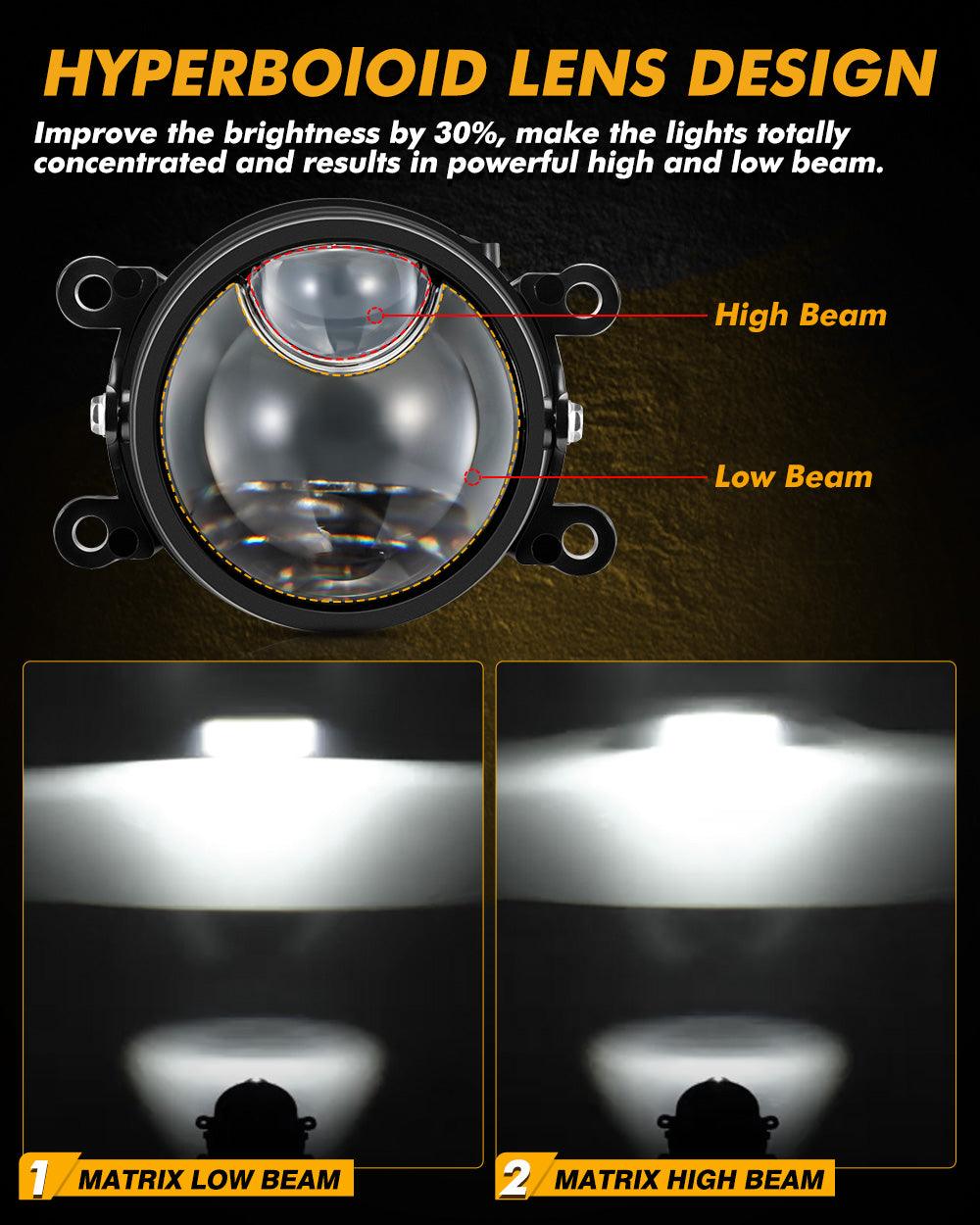 3 Inch 90W Bi-LED Projector Lens Fog Light 6000K Hyperboloid Lens Fog Light With Matrix Auxiliary Beam For Toyota/Honda | 2 PCS/Set