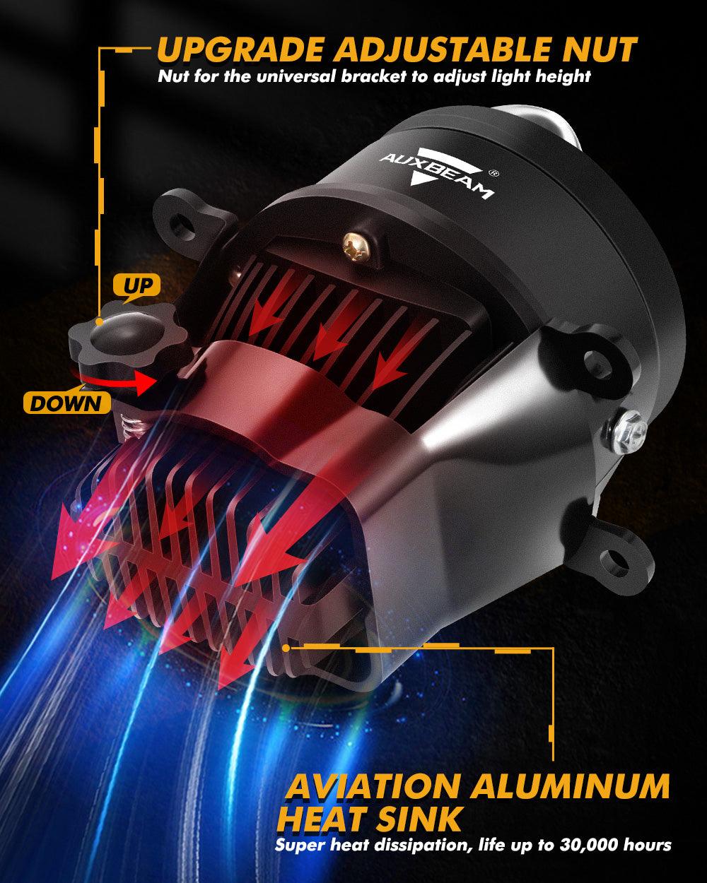 - Compact design, using thickened all-aluminum shell heat sink. The aluminum alloy radiator maximizes the surface area for optimal cooling, effectively prolonging the service life by more than 30,000 hours, and saving you trouble with frequent lamp replacement.