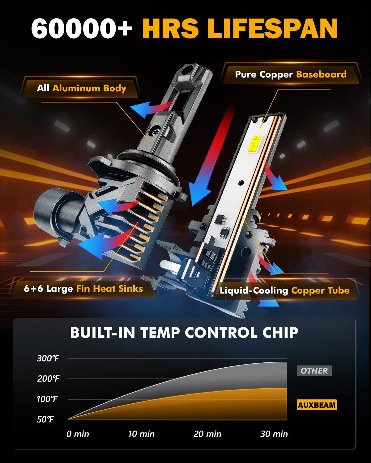 60W 18000LM per set light output provides strong penetration that enhances visibility in foggy, rainy, snowy, and other extreme weather conditions.
