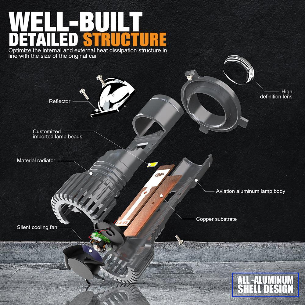- The newest upgraded smart IC driver makes the H4 LED projector headlights better compatible with 99% of vehicles without error.