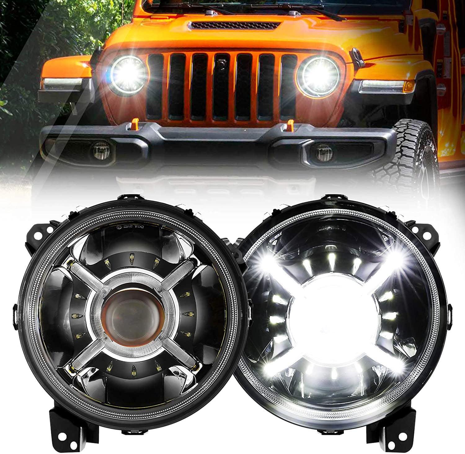 (2pcs/set) 9'' Round 100W LED light with Hi-Lo Beam & DRL for 2018-2022 Jeep Wrangler JL, 2019-2022 Gladiator JT