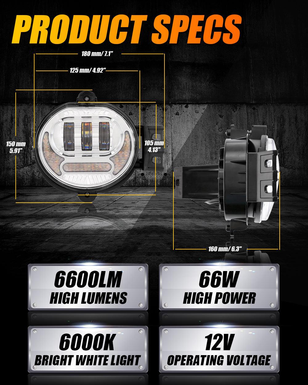 Power: 66W/pair (52W+7W DRL+7W Turn Signal Light)