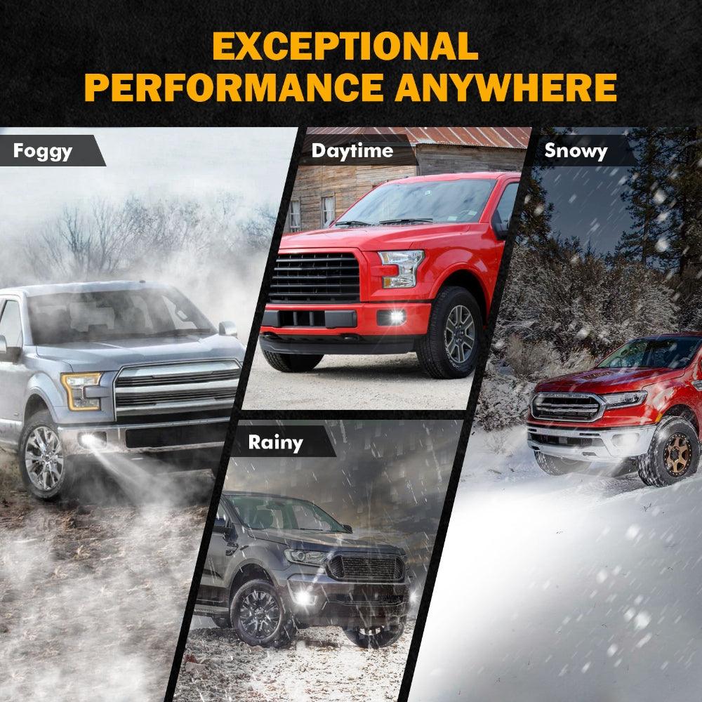 - 3 lighting modes all in one: Fog Light/ DRL/ Turn Signal Lights, give your Ford an awesome and attractive off-road look. The further lighting distance, clear cut-off line and extra illumination keep driving safe on foggy days.