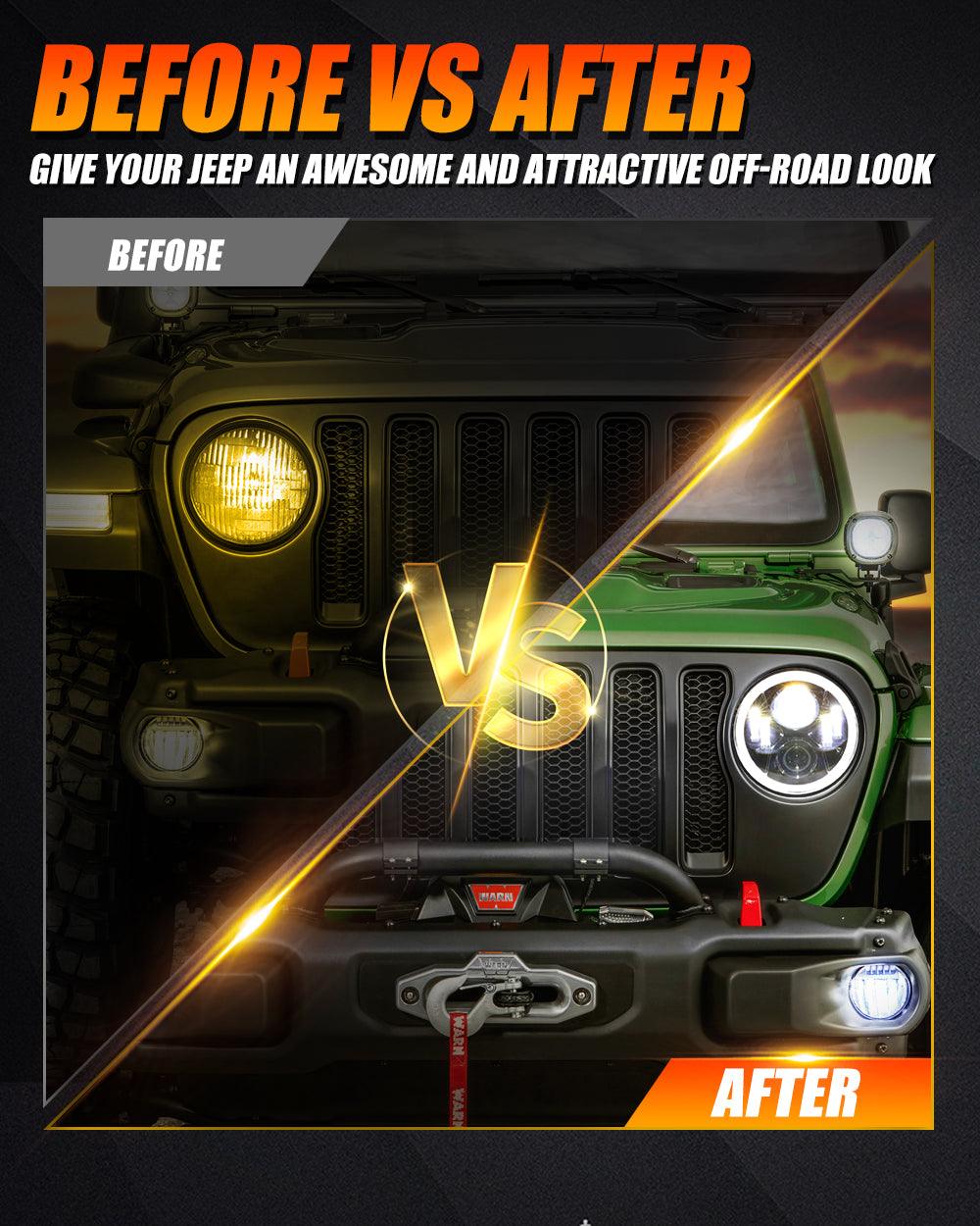- Made of die-cast aluminum housing and anti-scratch lens, the headlights will stay looking new and non-fading for a long time. Up to 50,000hrs Lifespan. Shock and corrosion resistance.