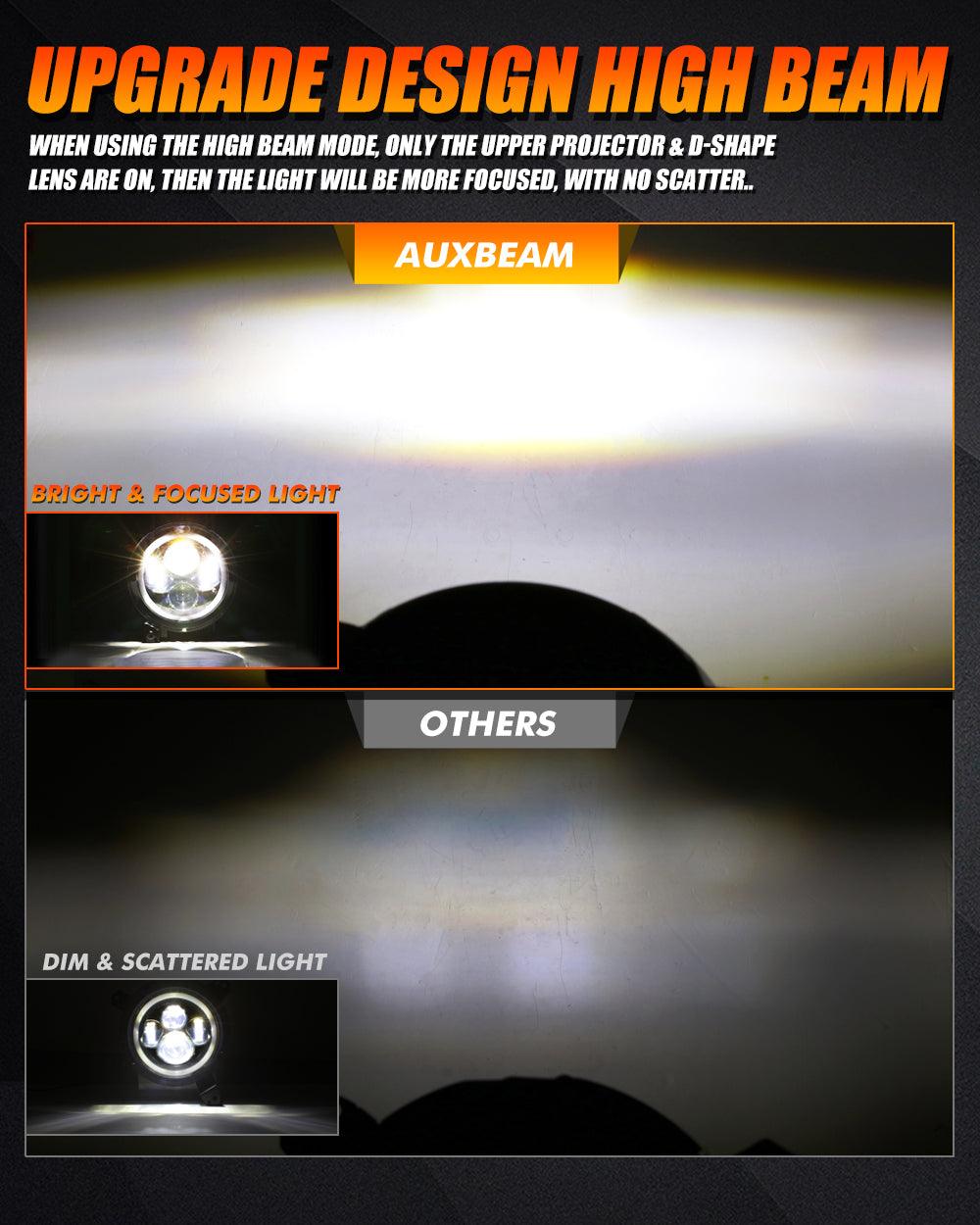 - 60W/6000LM on high beam, 30W/3000LM on low beam for superior light output, Auxbeam 9 Inch LED headlights are much brighter than the stock headlights.