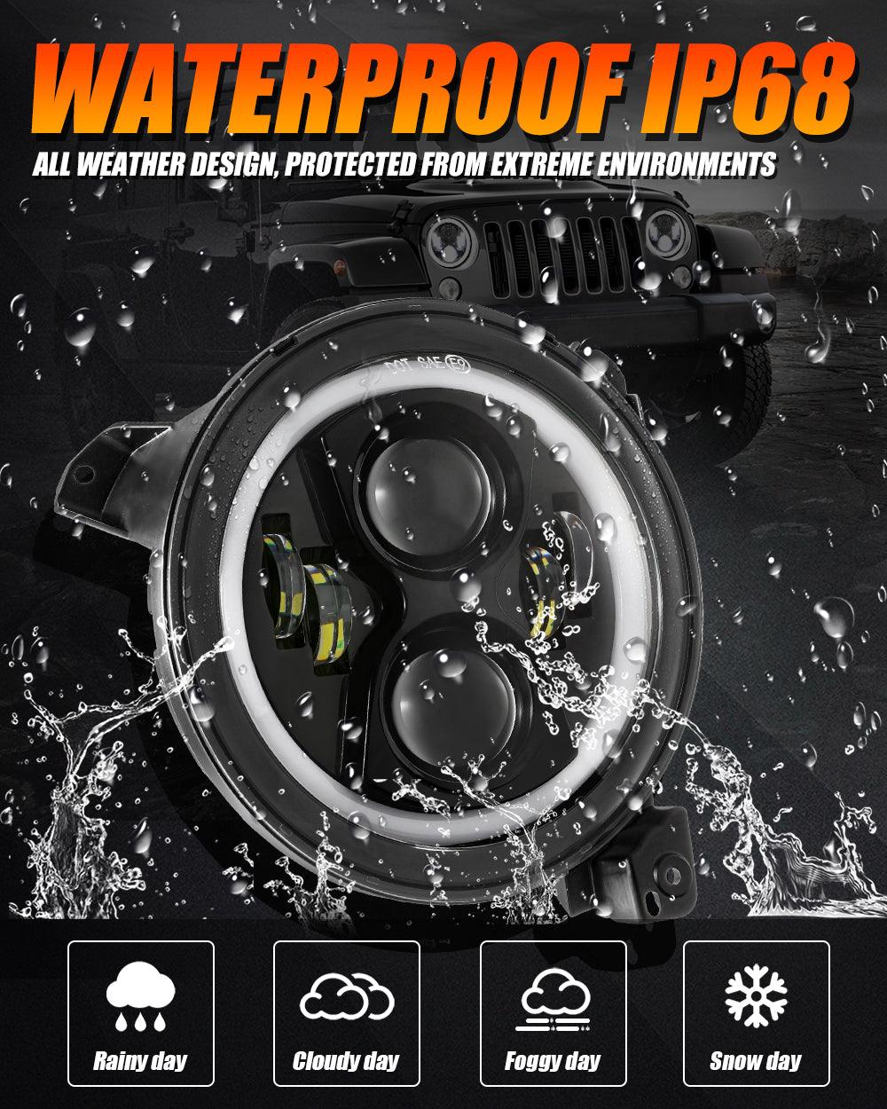(2pcs/set) 9 Inch LED Headlights with DRL Halo Ring for Jeeps Wrangler JL Jeep Gladiator JT 2018 2019 2020 2021 2022