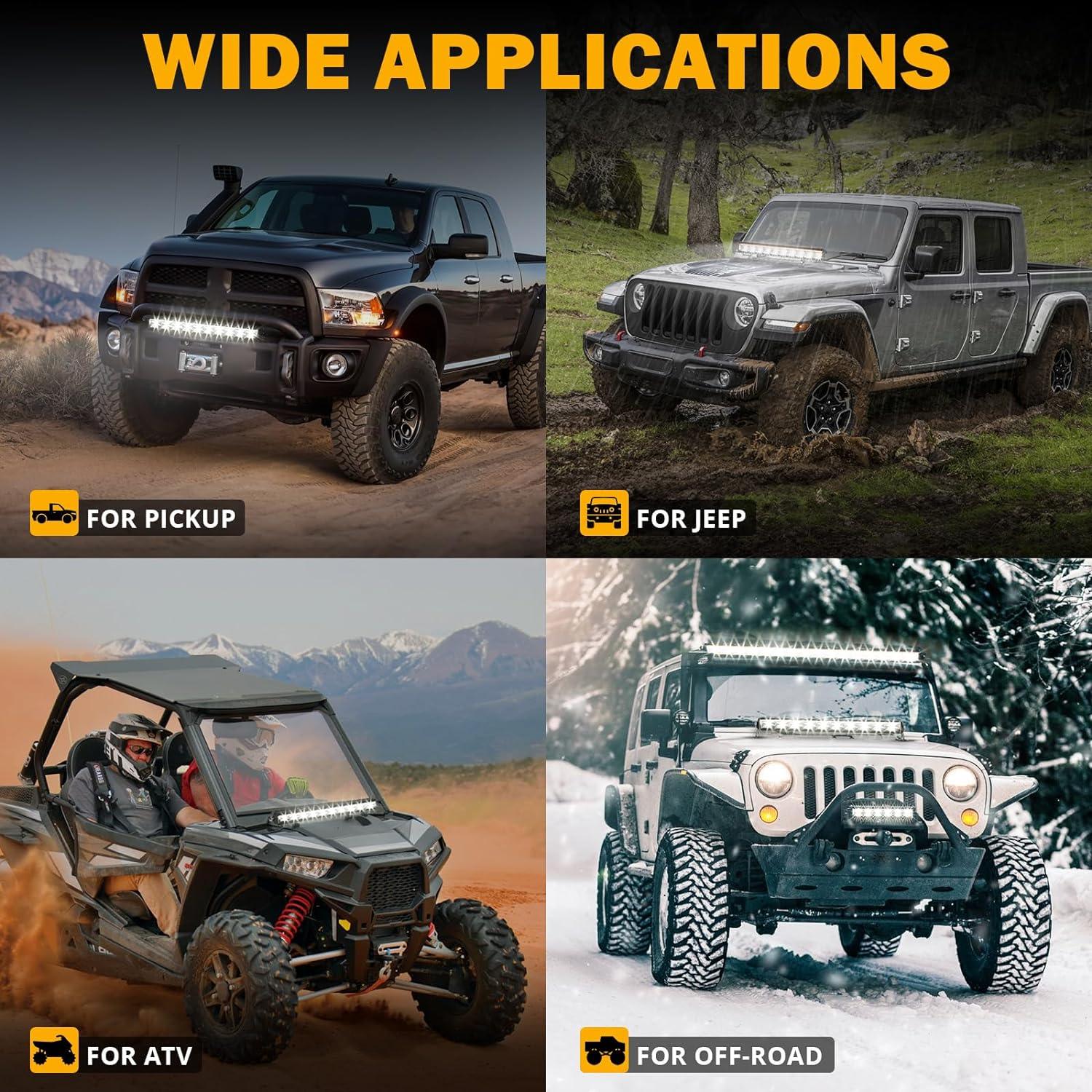 Ultra Brightness: Adopt advanced HFL3 10W led chips, total 114 watts, with lighting performance 12440LM, 1Lux@496Meters (1627FT). Features a trusted ultra-bright, high-intensity, stable light output, providing excellent visibility in the dark night, ensuring a safer and more enjoyable off-road experience.