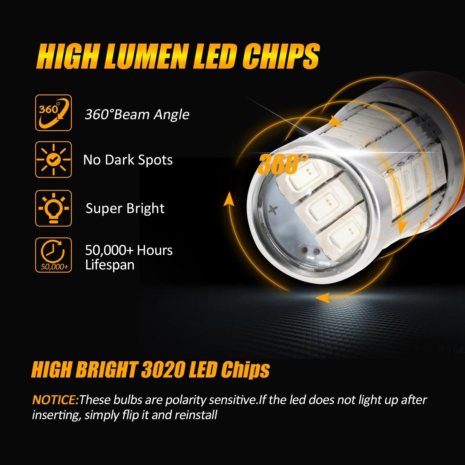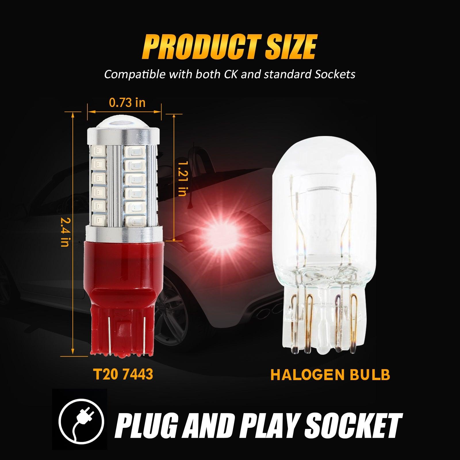 T20 7443 7440 LED Brake/Tail Light 20W 4000LM Red 33LED Series | 2 Bulbs