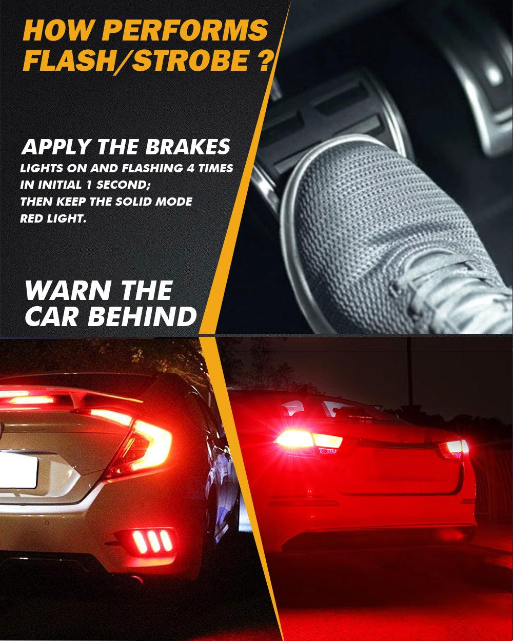 T25 3157 3156 LED Brake/Tail Light Bulbs 56W 600% High Brightness CAN-Bus Error Free Red Strobe Flashing B21 Series Strobe | 2 Bulbs