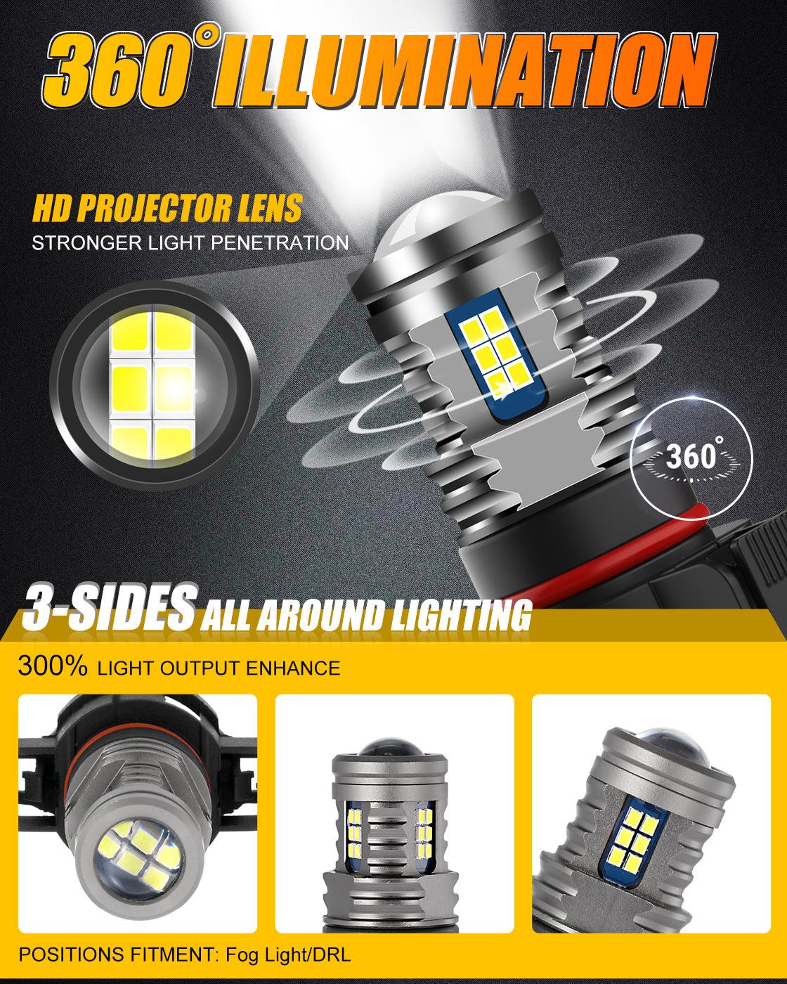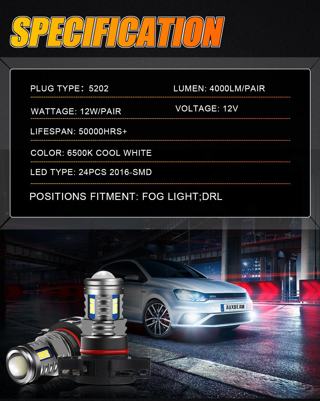 (2pcs/set) 5202/5201/PS24W/H16EU Y2 Series 3-Sides Cool White/Golden Yellow LED Fog Light/DRL