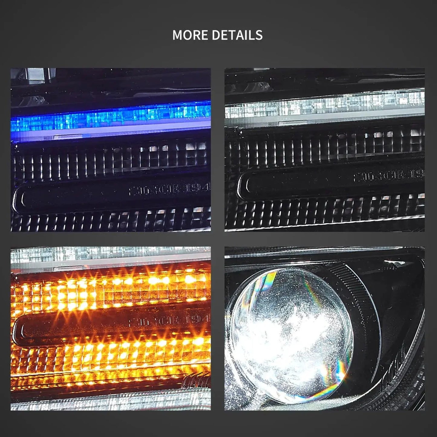 - With Startup Animation DRL( blue to white startup color changing) + LED High/Low Dual Beam Lens + LED Dynamic Turn Signal.
