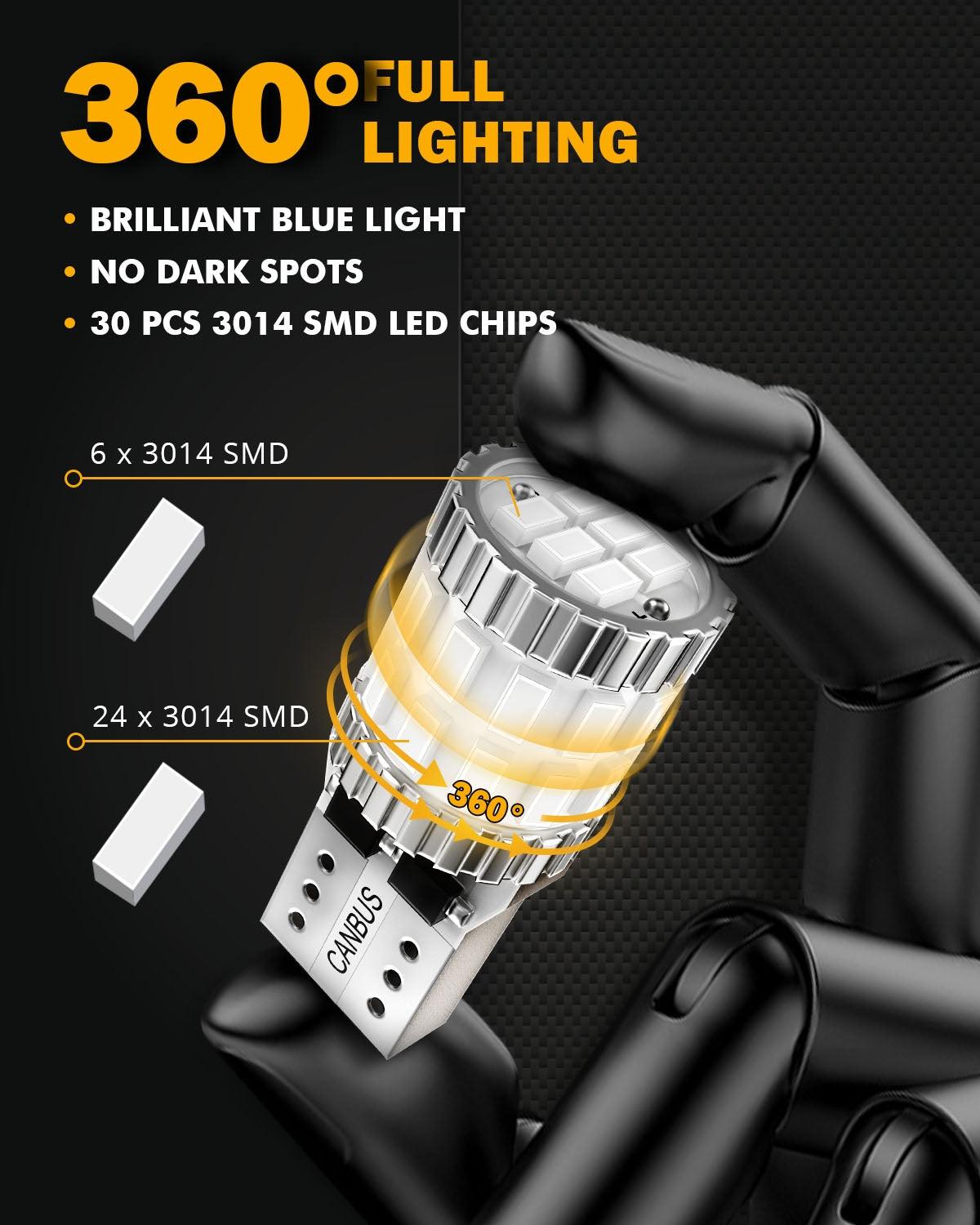 168 2825 W5W T10 LED License Plate/Side Marker/Interior Light Bulbs 3W 400% Brighter Canbus Error Free Blue B1 Series | 2 Bulbs