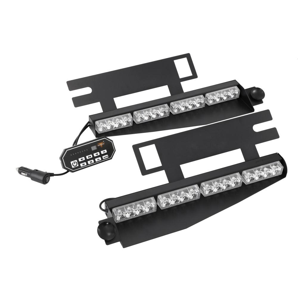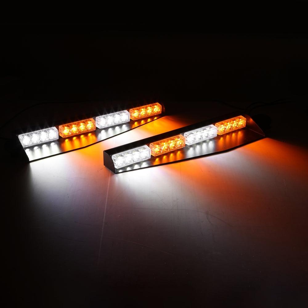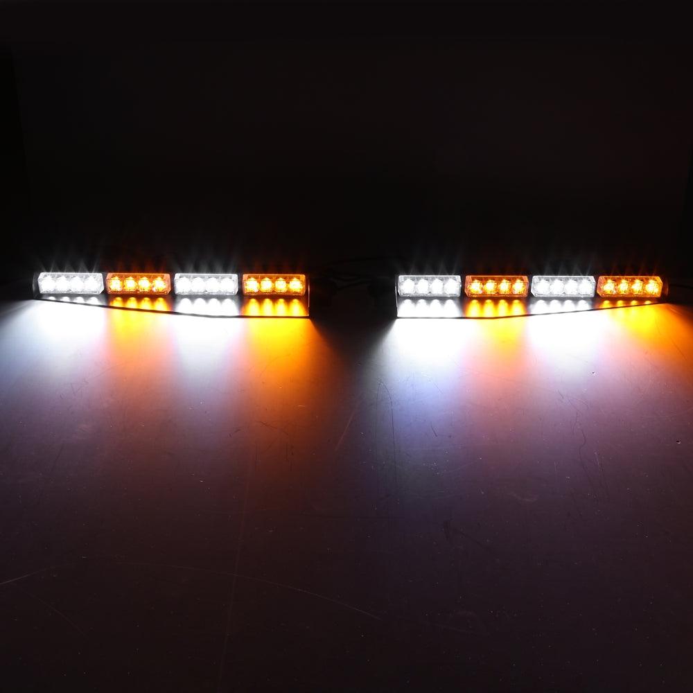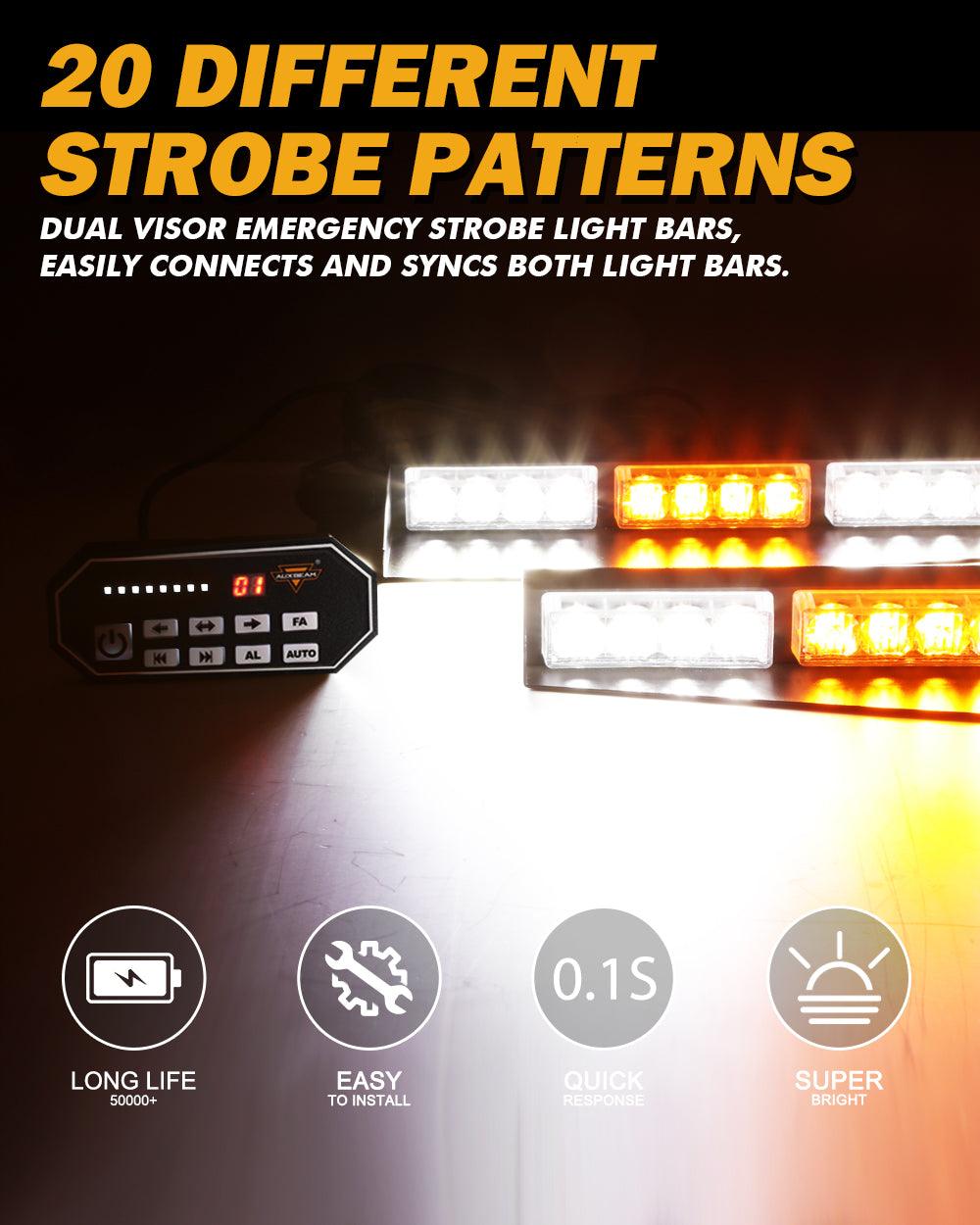 17 Inch Dual Visor White&Amber Strobe Light Bar 20 Flashing Patterns with Controller Switch Panel for Vehicles Trucks SUV ATV Car