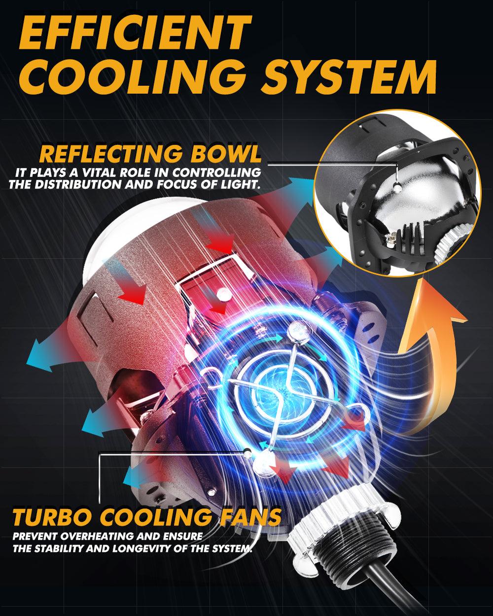 - Adopt 6 pcs SMD3570 LED chips, each group provides 70W 9000LM light output, 100% brighter than ordinary LED projector lens, 200% brighter than bi-xenon projector lens, 6000K white light allows you to see farther and wider when driving at night.