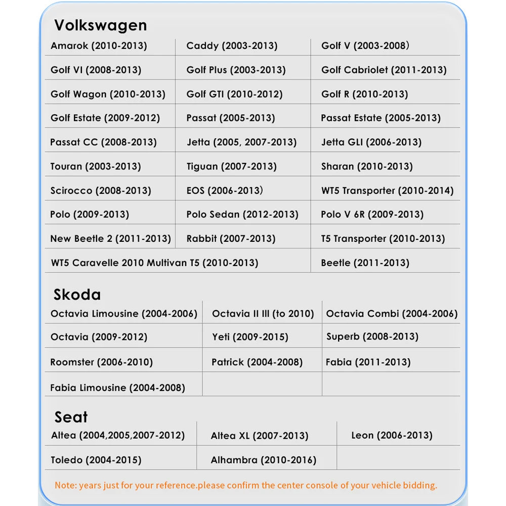 Applicable vehicle model 6: for vw Jetta 2005-2013 models