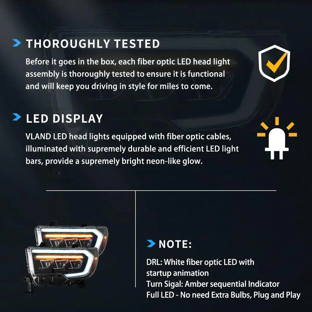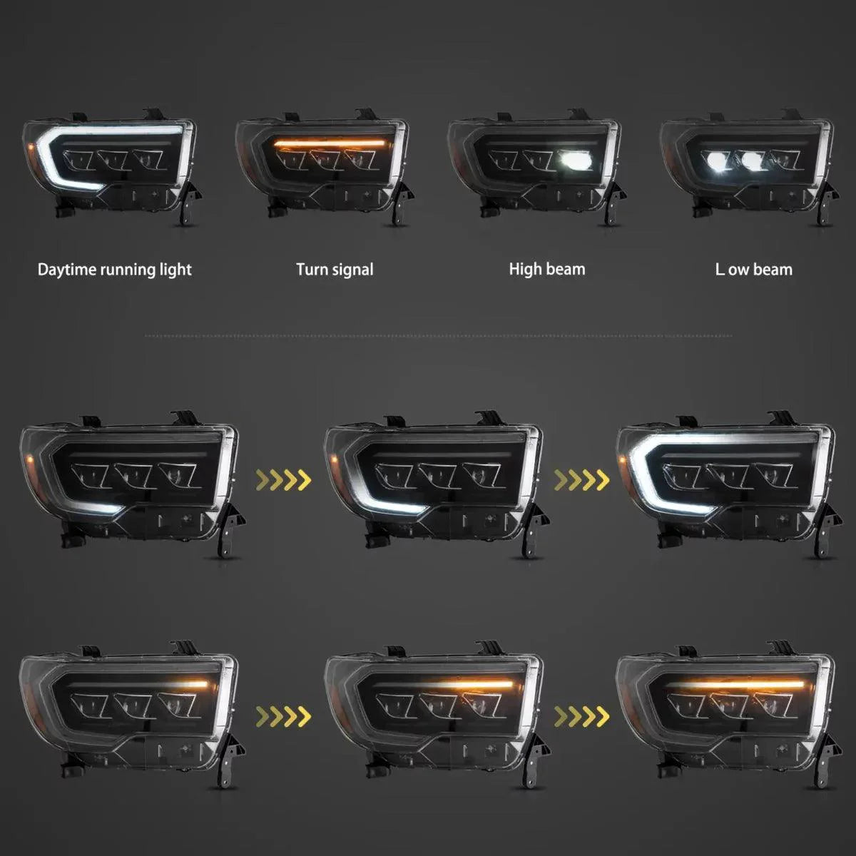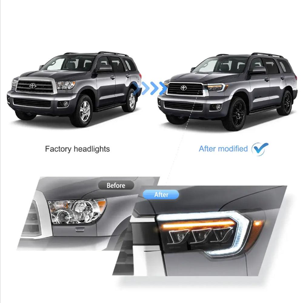 LED Headlight Assembly Matrix Projector Black For 2007-2013 Toyota Tundra 2th Gen (XK50) & 2008-2021 Toyota Sequoia SR5 2th Gen (XK60)