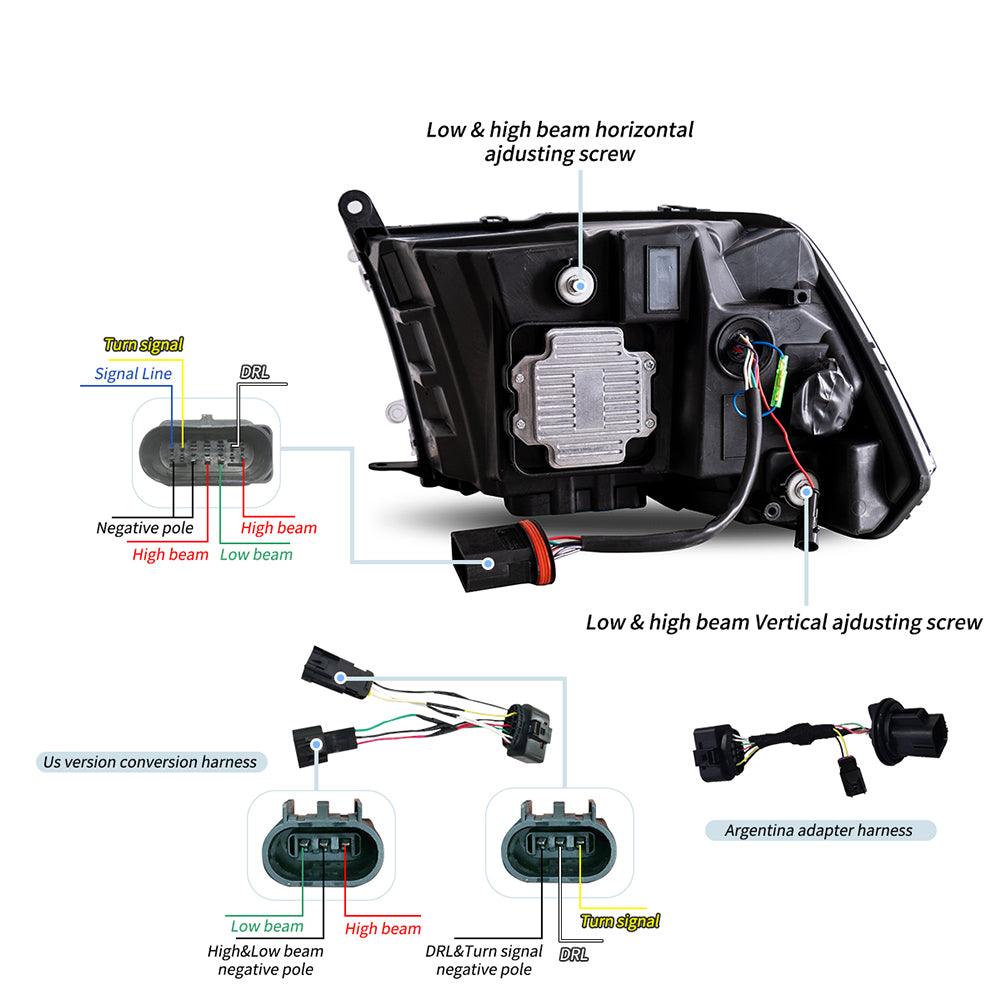 - One pair of HeadLights (Including left side and right side), a pair of converters. This item has the same connections and wires as the original HeadLights.