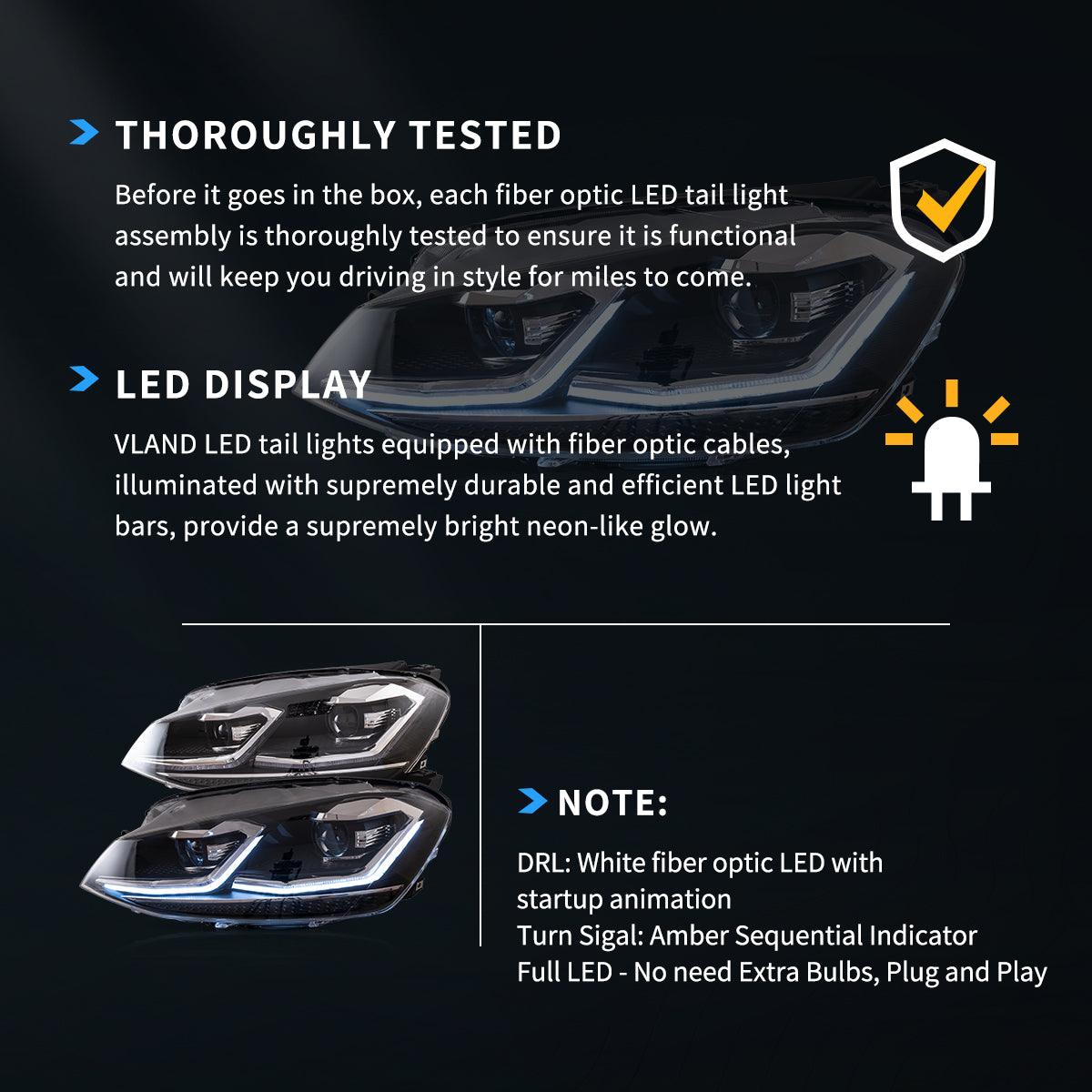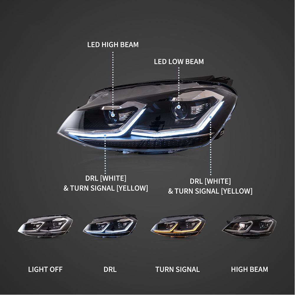 LED Headlight Assembly Projector Black For 2012-2017 Volkswagen Golf 7th Gen (Mk7, Typ 5G)
