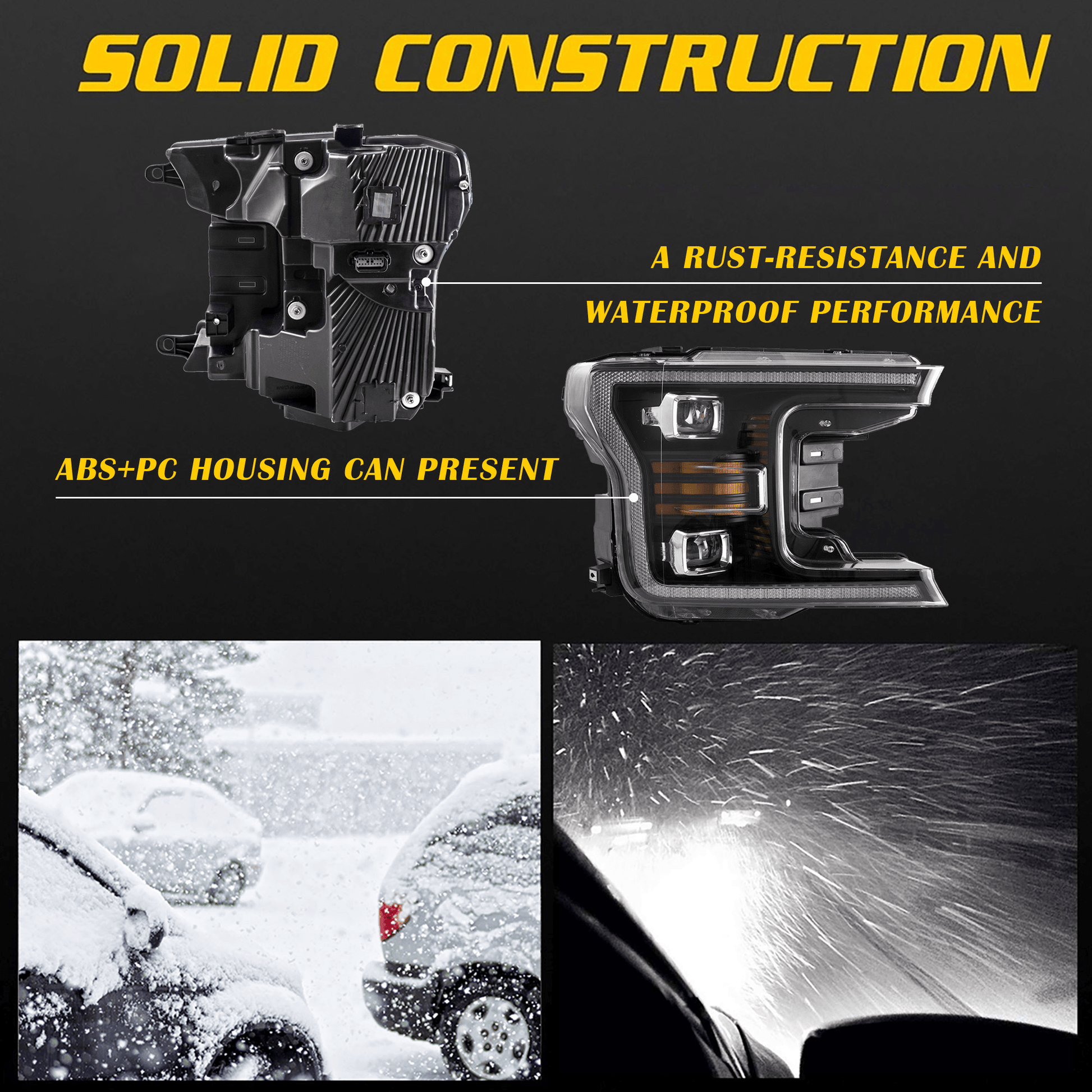 LED Headlight Assembly Dual Beam Projector Black For 2018-2020 Ford F150 13th Gen Facelifted