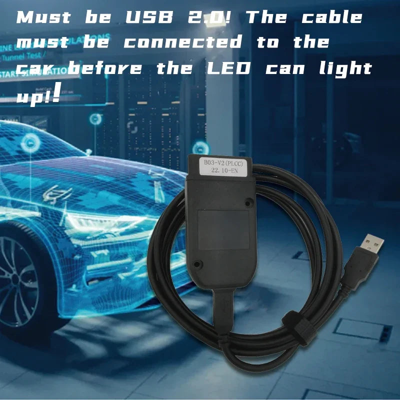 Not supports PC USB 3.0 , must be USB 2.0 !  Cable must be connected with car, then LED can be light