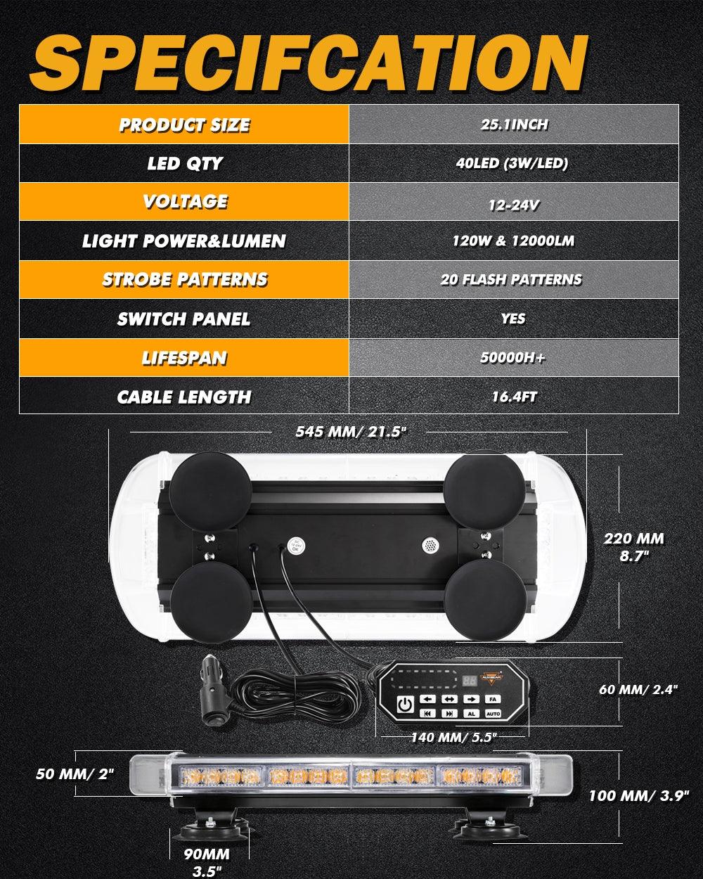 Perfect Bright: This emergency flashing light bar has a total of 40 high-power 3W LED chips. Crystal clear lens for max brightness, visible day and night. Great for law enforcement cars, plow trucks, construction vehicles, tractors, security, snowplow, postal, mail carrier, and city service workers, to warn of potential hazards.