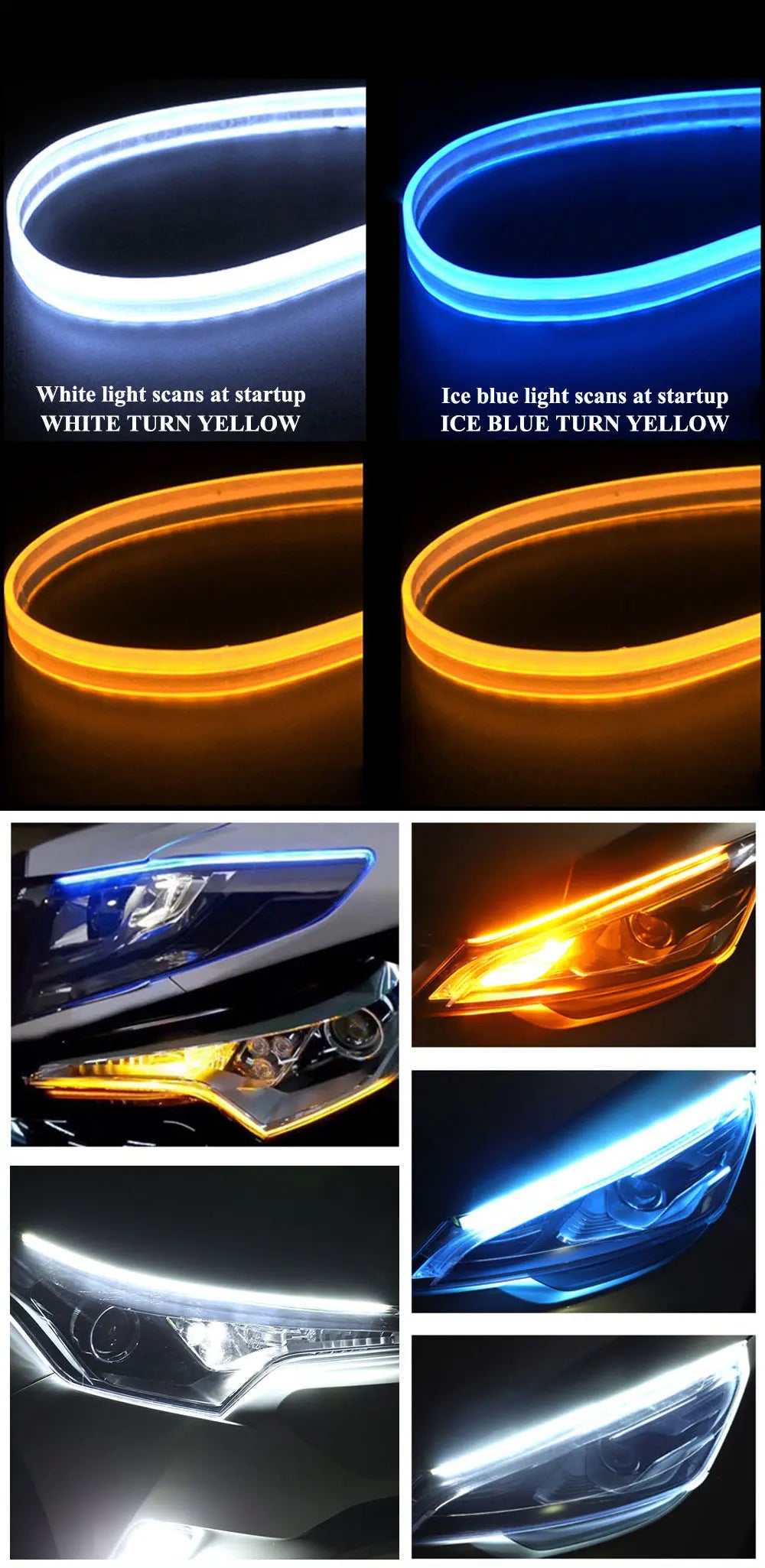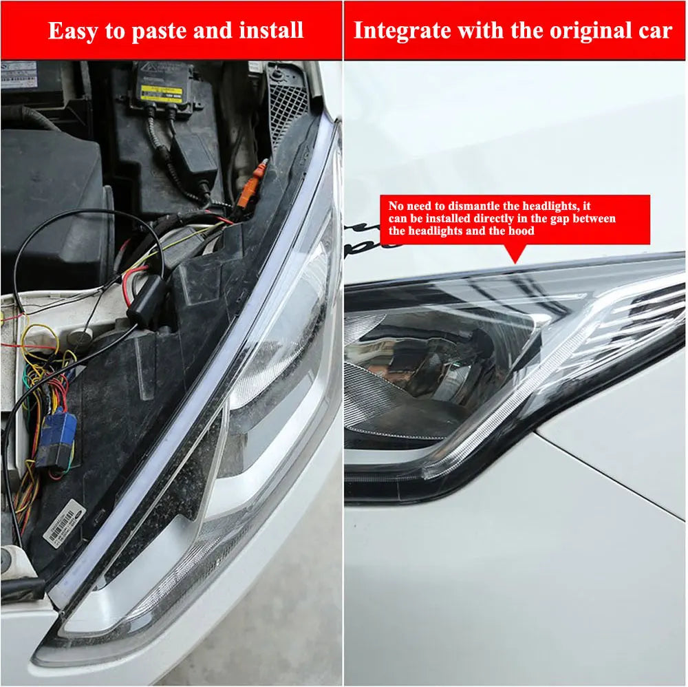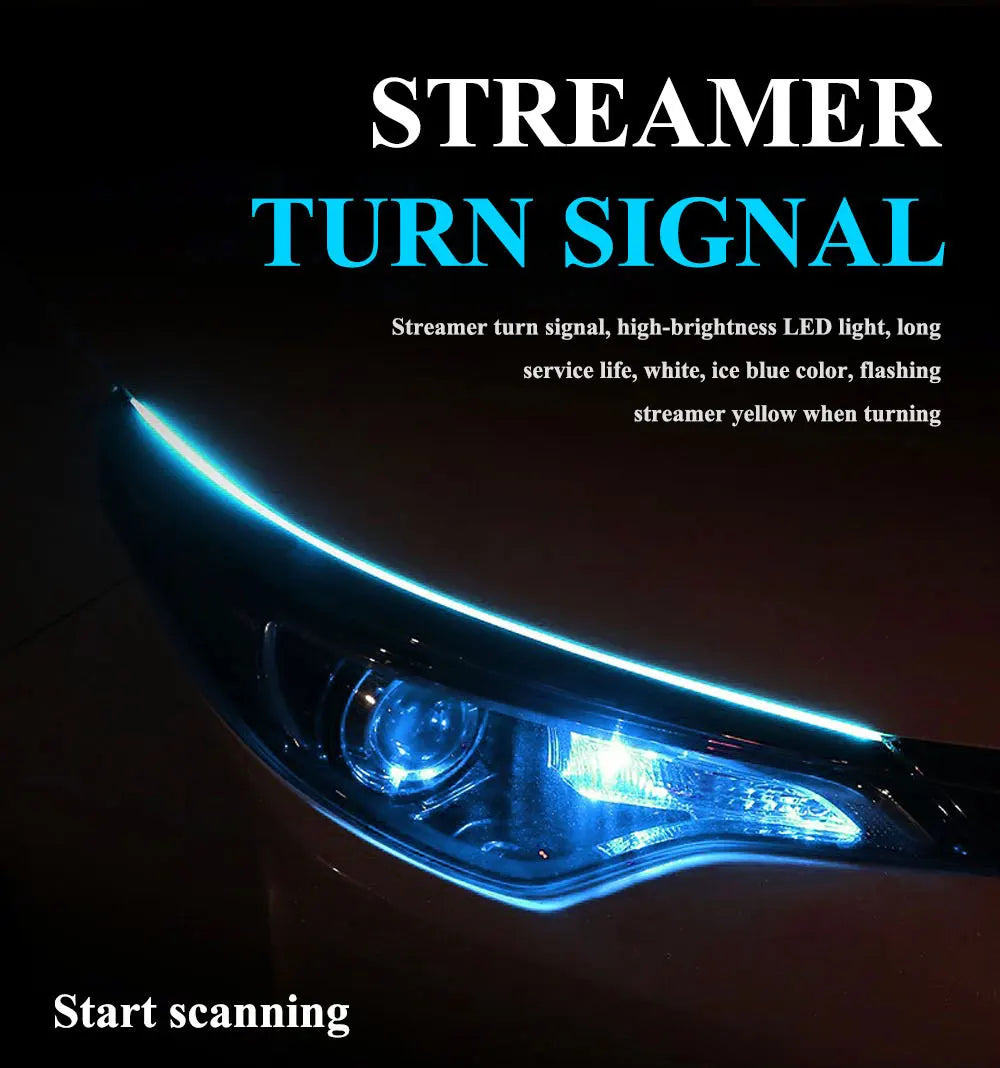 2pcs LED DRL Car Daytime Running Light Signal Lamp Flexible Decorative Strip Auto Headlights White Turn Yellow Flowing Signals