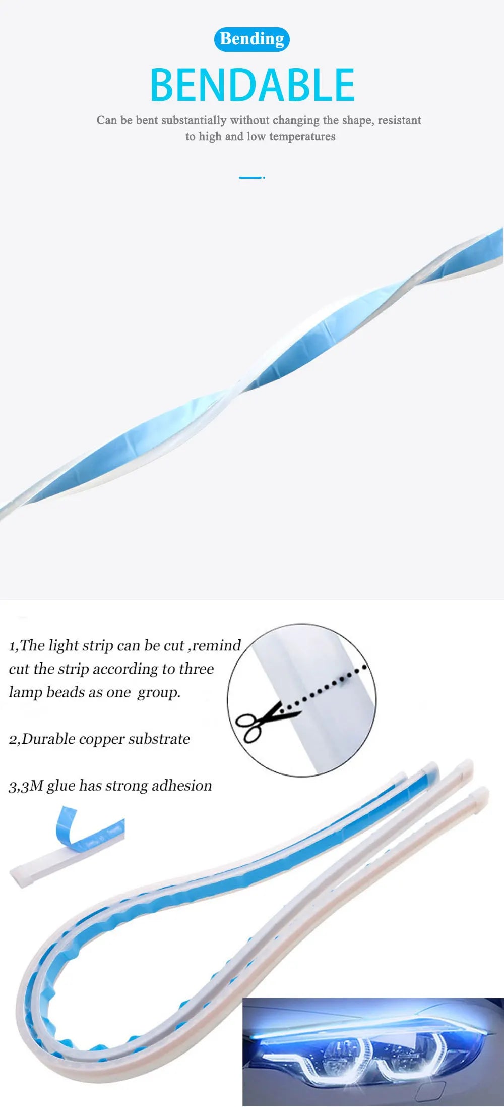 LED DRL Flexible Soft LED Strip Light for car.