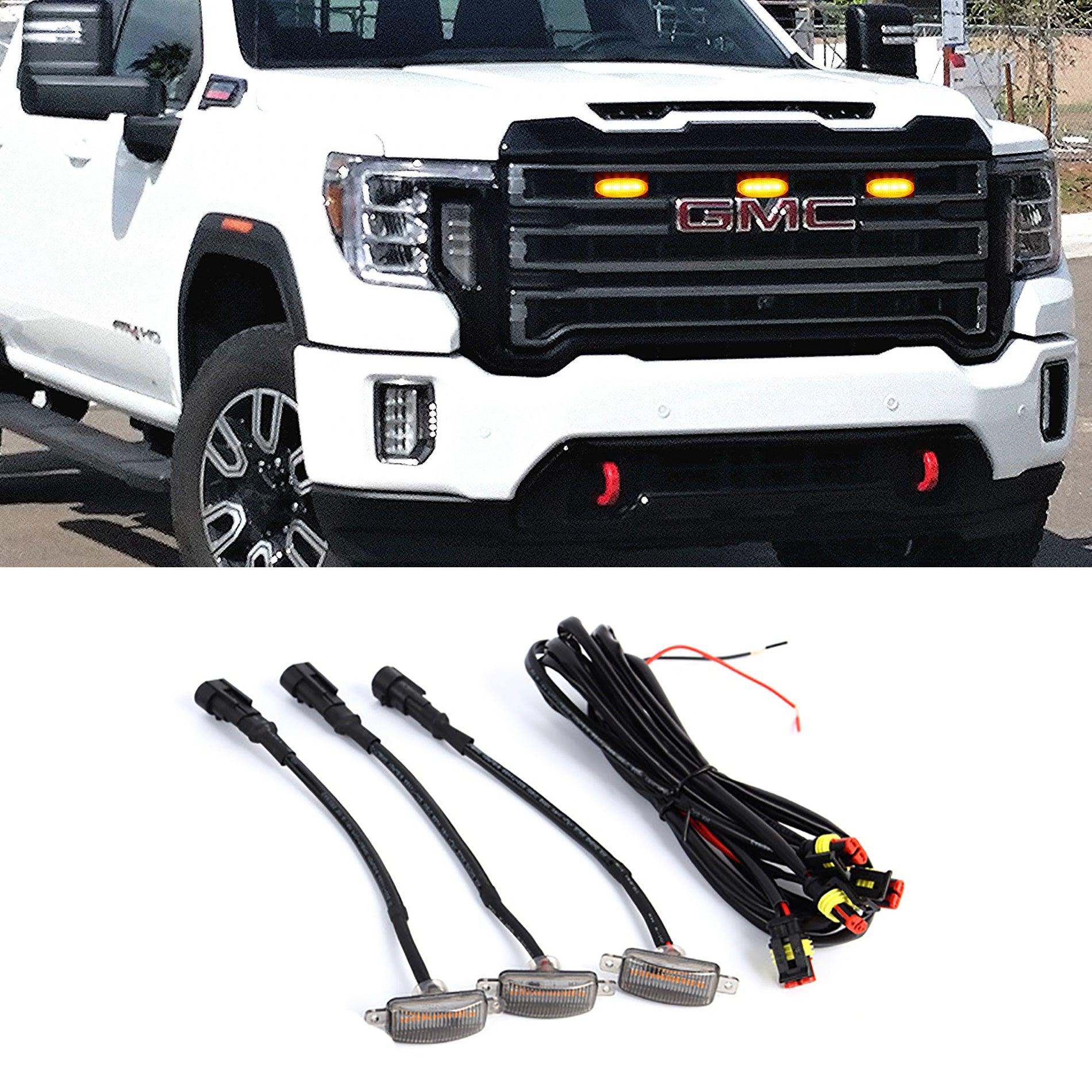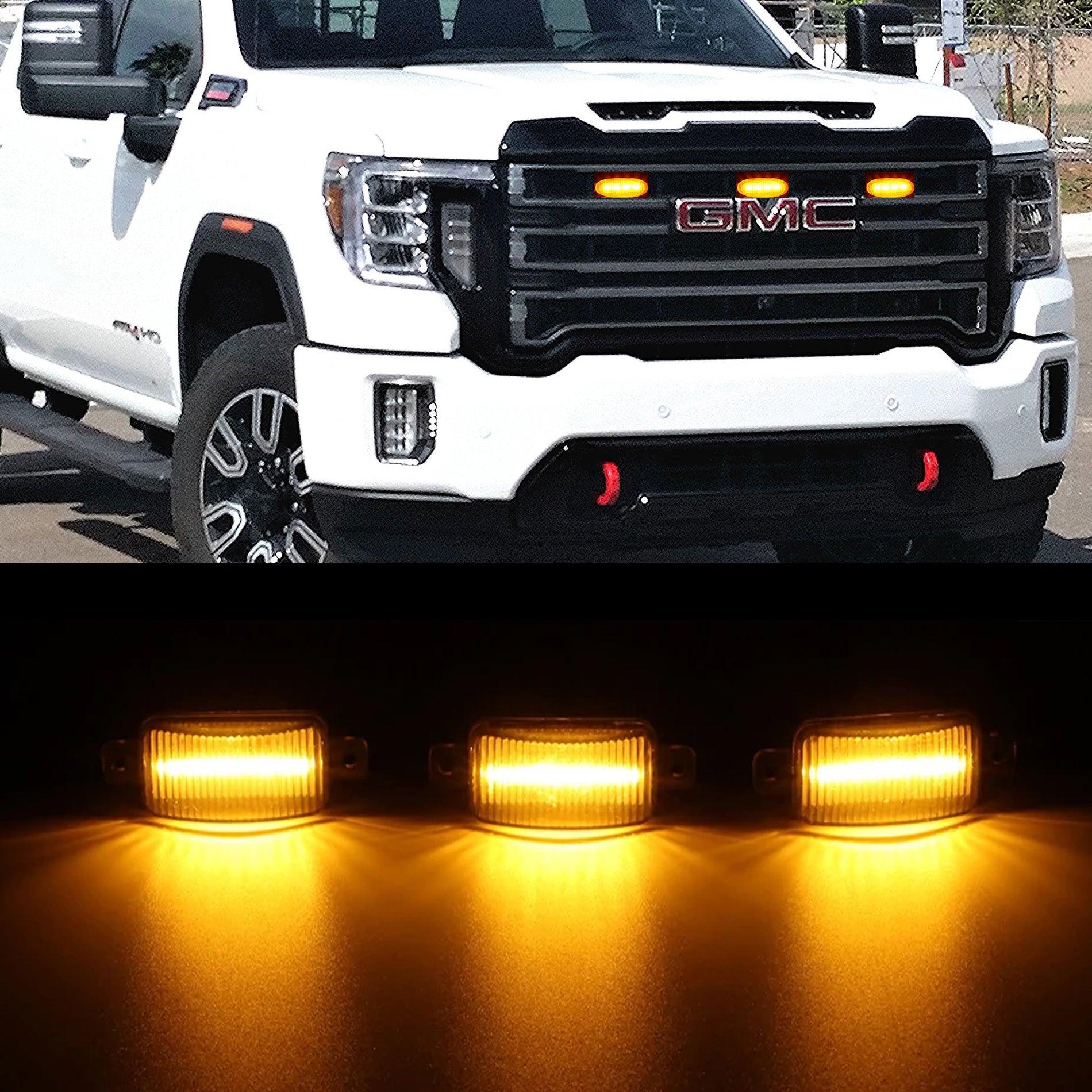 (3pcs/set) LED Front Grille Lights Raptor Style Amber Light Fit for GMC Sierra 2500 HD 2016-2021 (Amber shell/ Smoked shell)