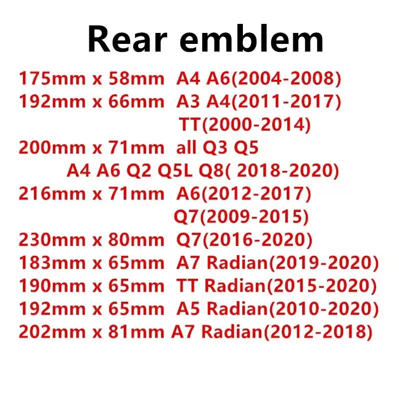 6. Rear trunk sticker 215x70mm for old Q7 A6L (since it is a sticker can use on any car except A5, A7 which is with arc.)