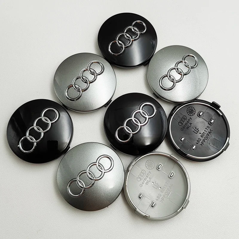 4pcs 60mm Black Grey Car Styling Badge Wheel Center Hub Cap Rim Caps For Audi Emblem 4B0601170 A1 A3 A4 A5 A6 Auto Accessories