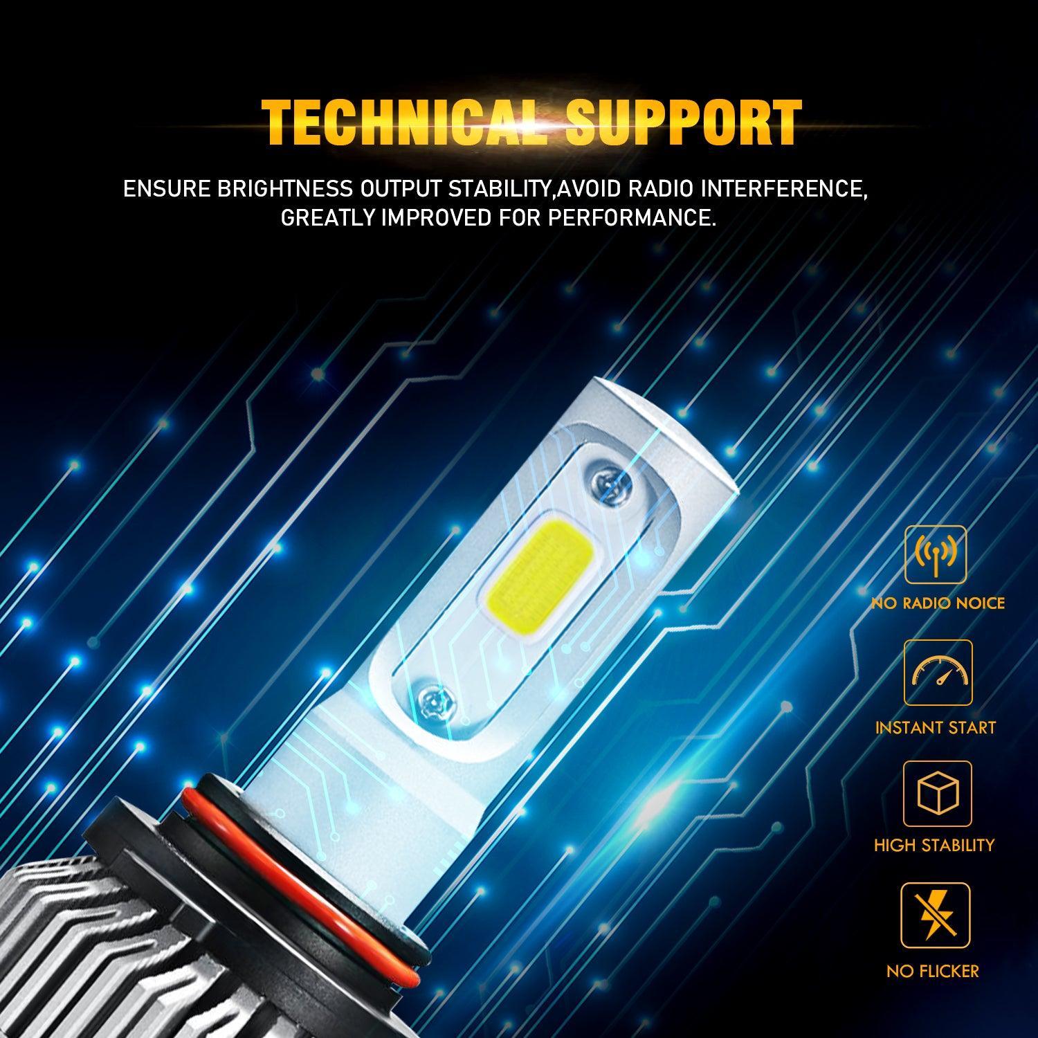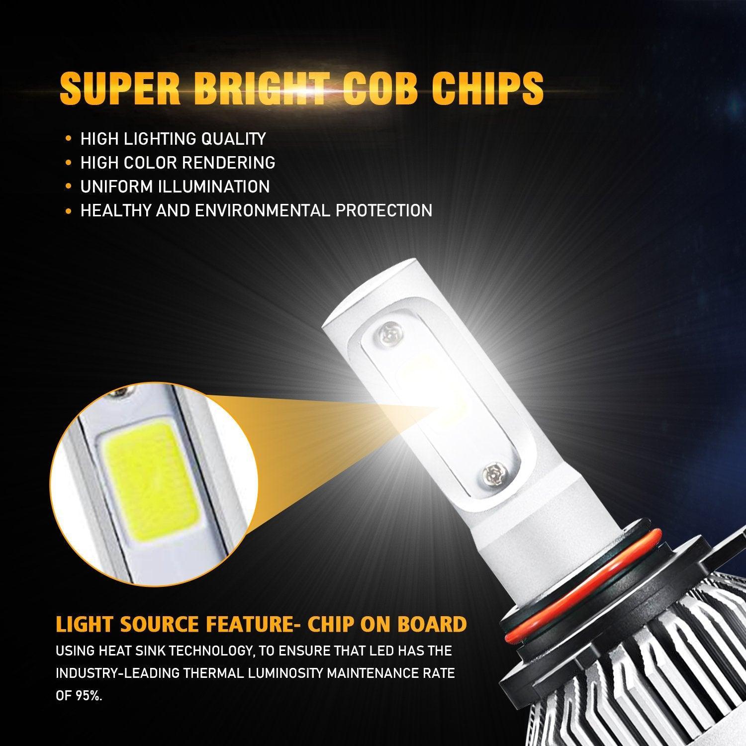 Bombillas de faros LED 9012/HIR2 72W 8000ML Serie S2 Super Brightes COB 6500K Blanco frío | 2 bombillas