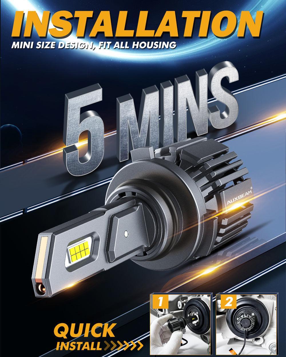 - Utilizando la última tecnología de compresión, la bombilla LED 9006 se compromete a hacer que la instalación sea muy sencilla, ya que el tamaño de estas bombillas se controla por expertos y se reduce en un 20 %.
