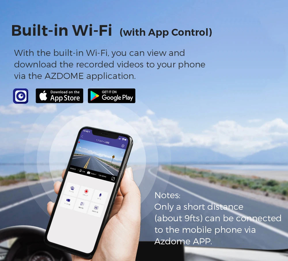 The videos/pictures can be viewed and downloaded to the smartphone through the dash cam's Wi-Fi and AZDOME App, No need to take out the TF card to check on the computer.