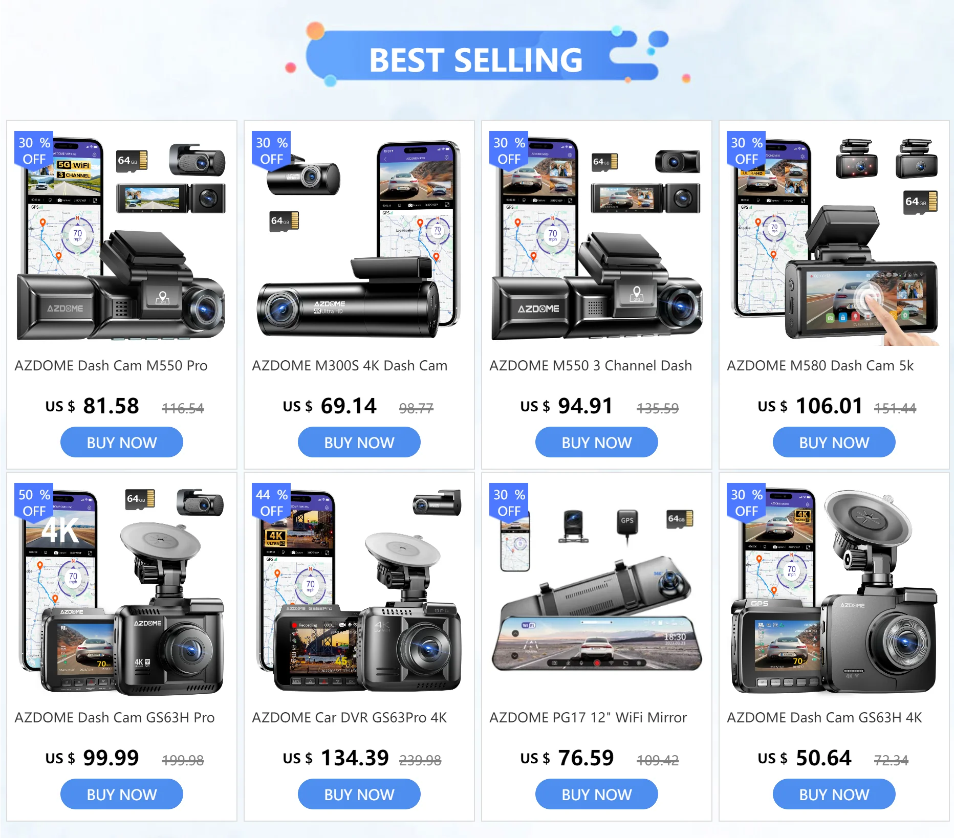AZDOME Voice Control 4K+1080P Dual Cameras Built-in GPS WiFi