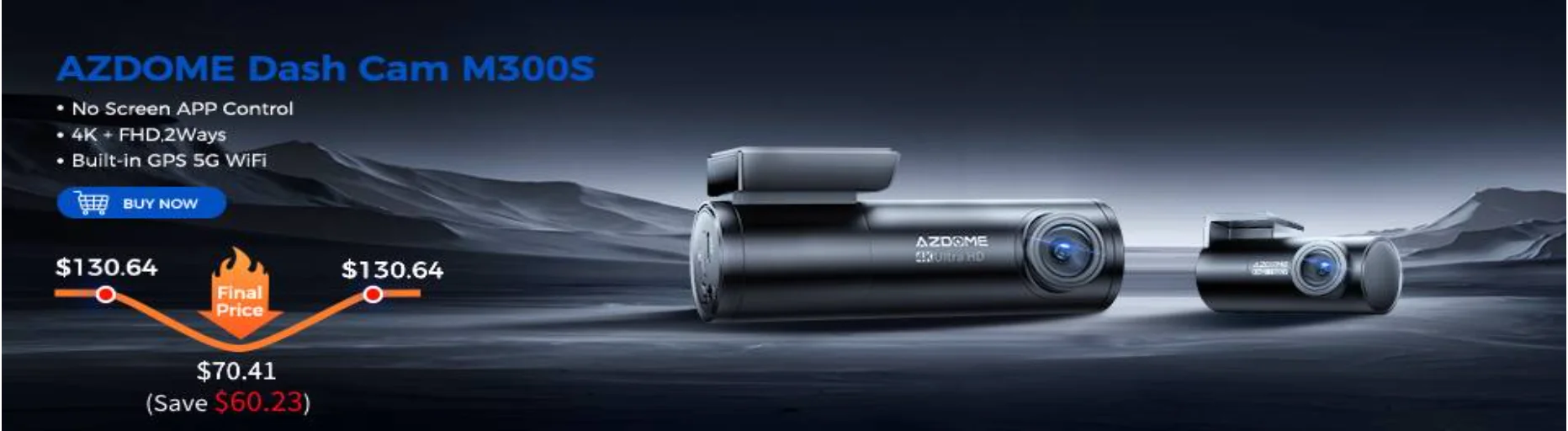 AZDOME Dash Cam M300S 4K 1080P Dual Dash Car Camera Built-in 5.8GHz WiFi GPS Car DVR 24H Parking Mode Night Vision Black Box