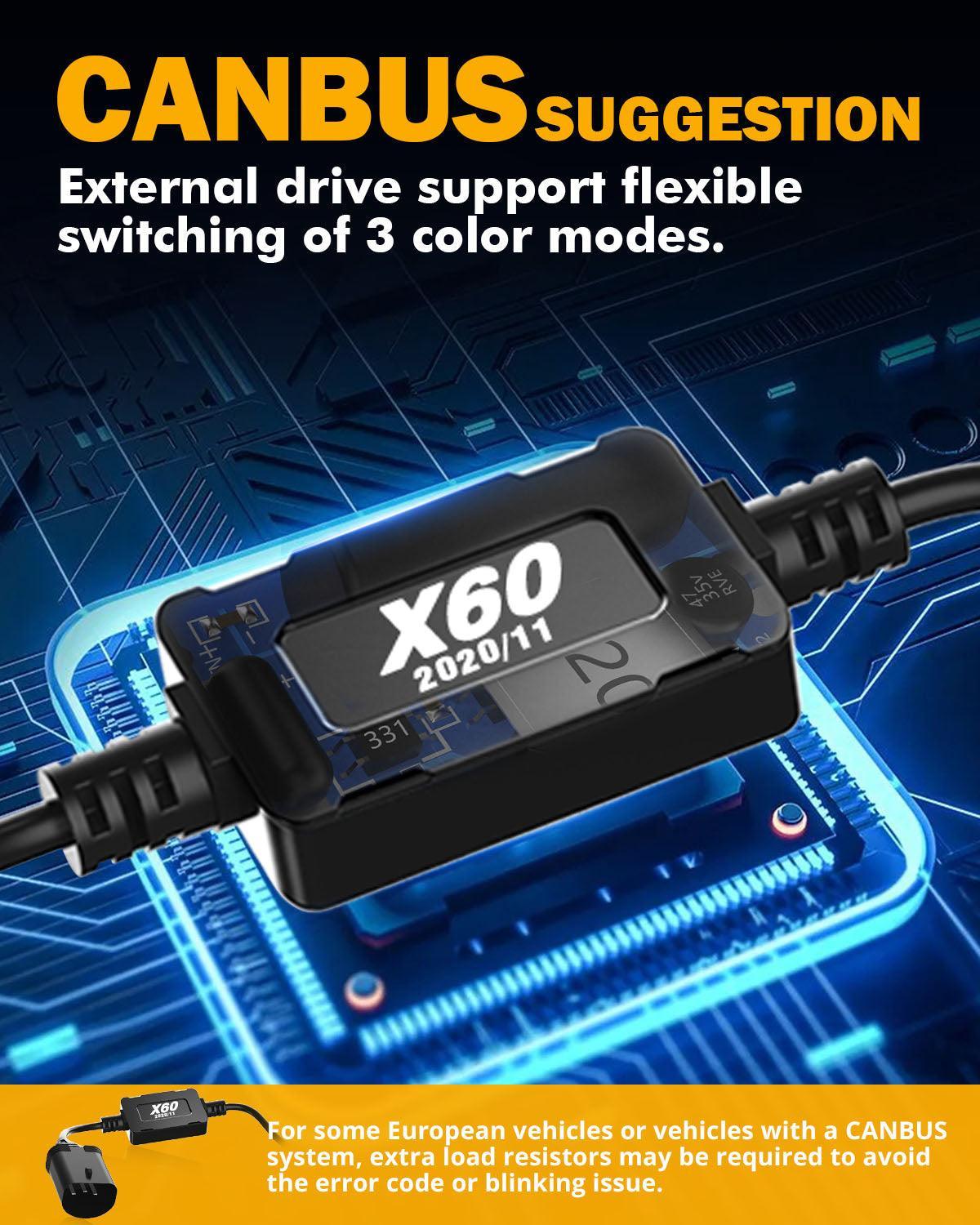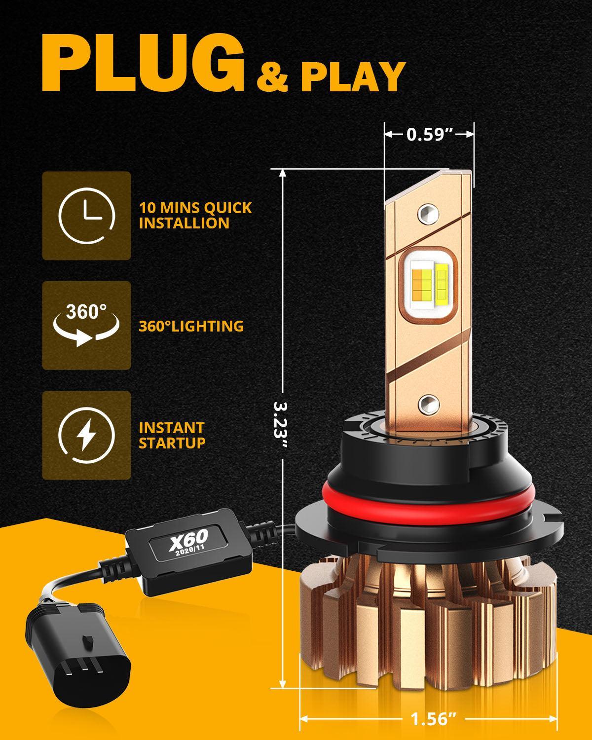 9007/HB5 Bombillas de faros LED 40W 8000LM Serie X60 Sin ventilador 3 colores Switchback | 2 bombillas