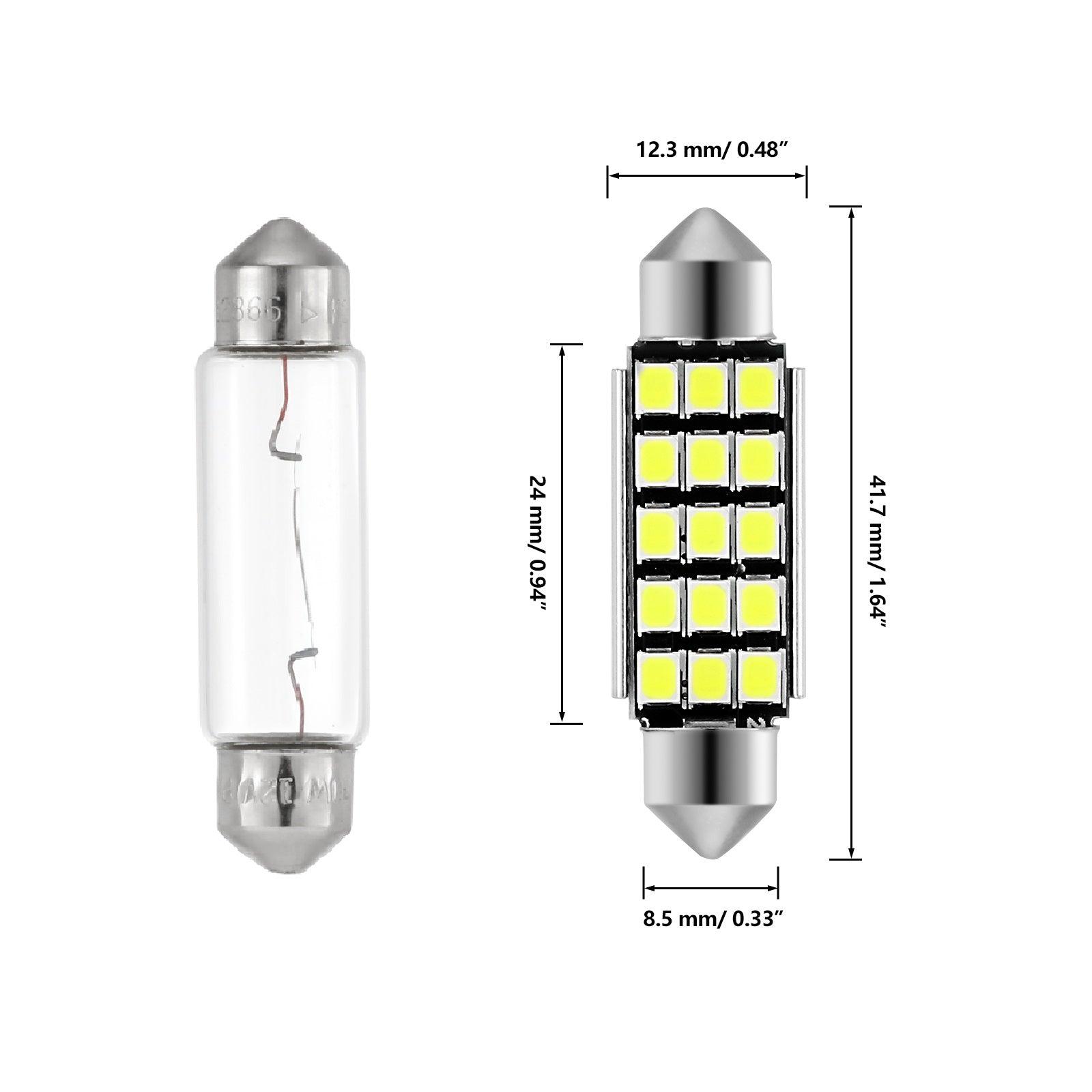 41MM 578 211-2 212-2 214-2 1.61" Festoon LED Interior/Dome/Map/License Plate Light Bulbs 2.7W 500LM 6500K White | 2 Bulbs