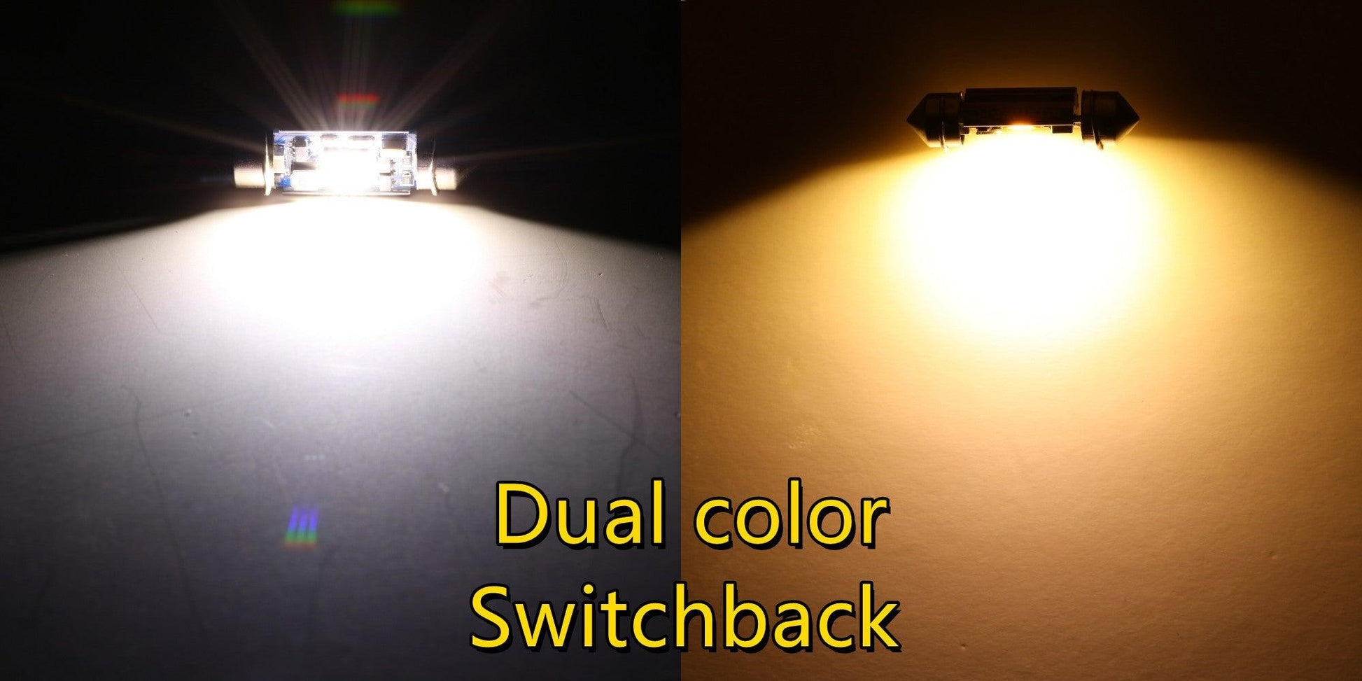 🆕(2pcs/set) Dual Color Switchback 36MM DE3174 3425 6461 11005 12854 1.42" 1860CSP 6500K Cool White& 5000K Natural White LED Festoon Canbus For Interior Dome Map License Plate Bulbs