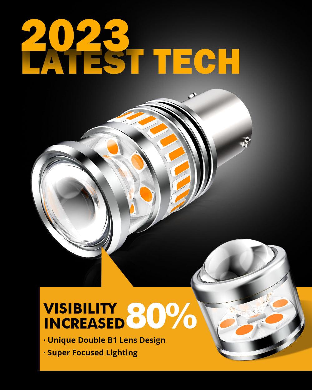 BAU15S 7507 LED Turn Signal Light Rear/Front, Side Maker Light Bulbs 11W 4000ML 3500K Amber B1 Series | 2 Bulbs