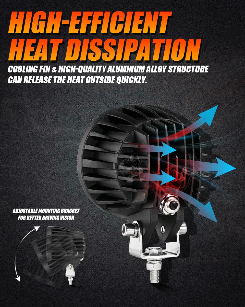 White spotlight with amber DRL. Focused spot white light provides long-distance illumination for clear vision when driving at night. Strong penetrated Amber DRL, as the reverse lights, fog lights, or warning lights, gives your vehicle an attractive look and gets noticed on the road to avoid accidents.