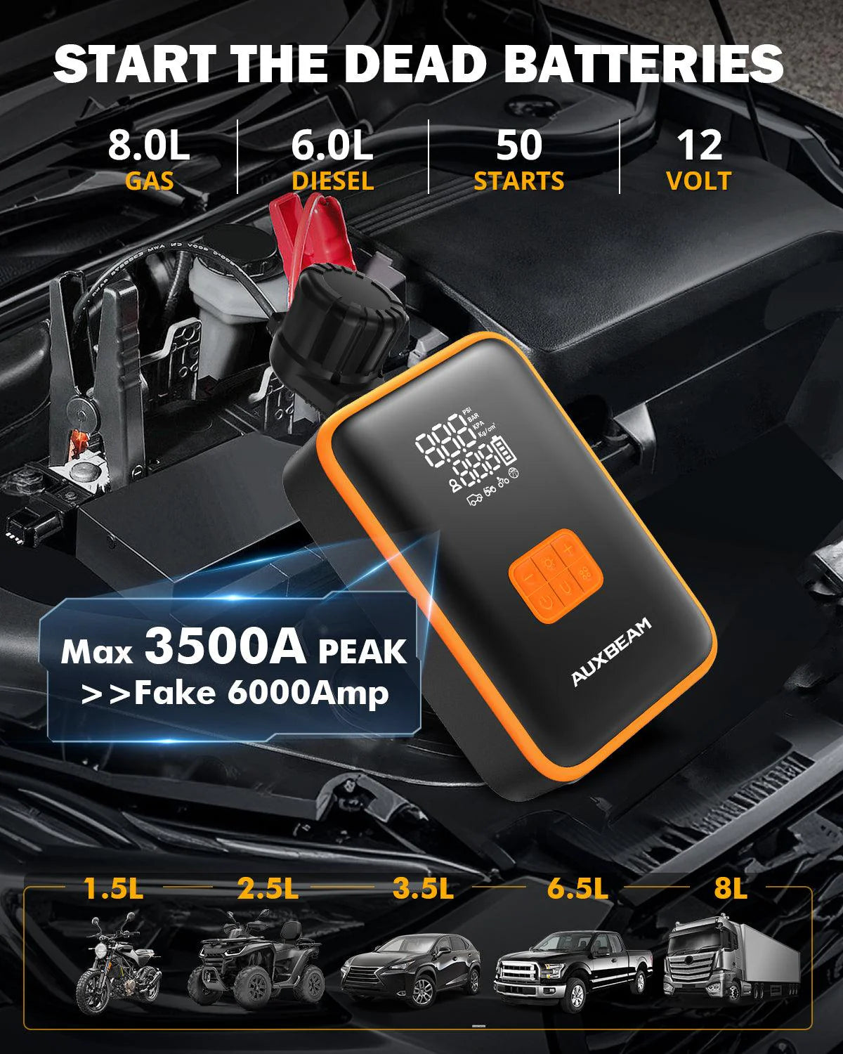 • Courant de crĂŞte: Jusqu'Ă  3 500A, adaptĂ© Ă  la plupart des vĂ©hicules, y compris les voitures, les SUV et les petits camions.