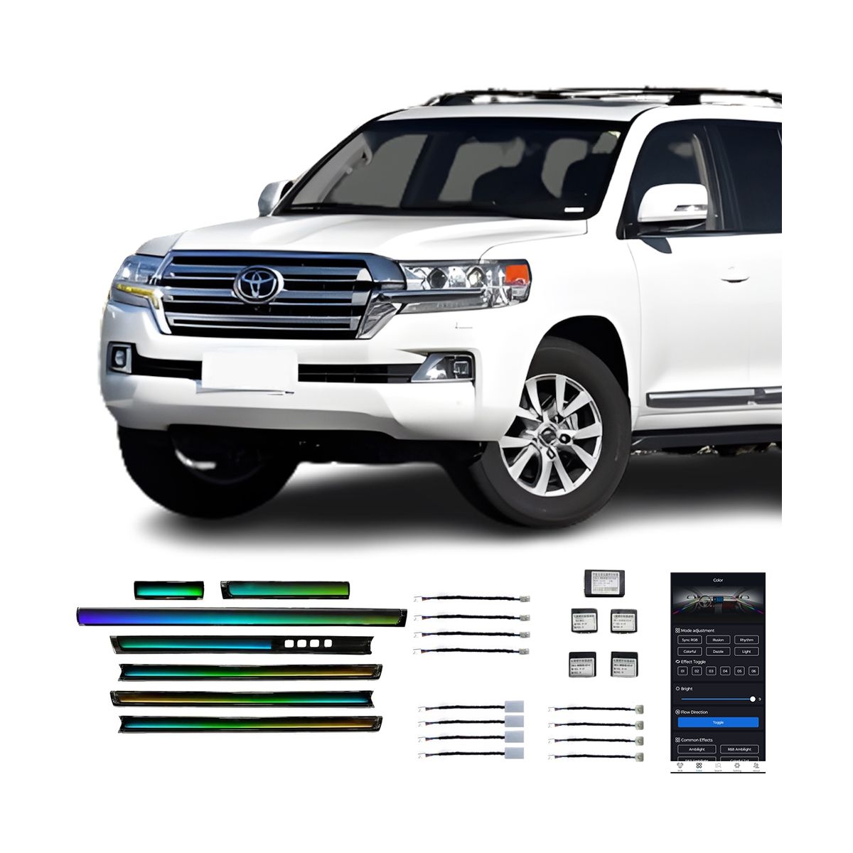 Transformez l'intérieur de votre Toyota Landcruise avec le kit d'éclairage d'ambiance 10-21 Landcruise Factory Sale, conçu pour offrir une expérience visuelle unique et raffinée. Ce système haut de gamme intègre 21 lumières dynamiques qui créent un jeu d'ombres et de couleurs magiques, sublimant chaque trajet par une ambiance personnalisée et élégante.